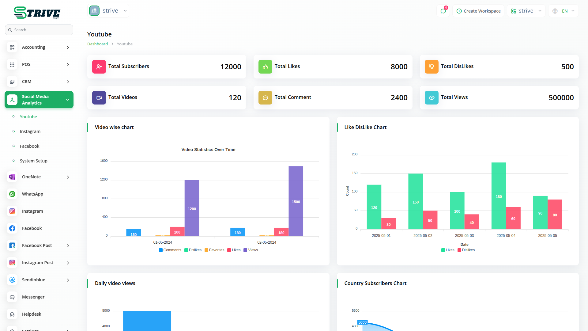 The Social Media Analytics Add-On helps you bring your YouTube, Instagram, and Facebook data into one central dashboard. Once activated, simply input the required credentials for each platform to begin tracking vital performance metrics. Designed to give you clear, actionable data, this Add-On makes it easy to measure engagement, reach, and growth across channels—without jumping between tools.