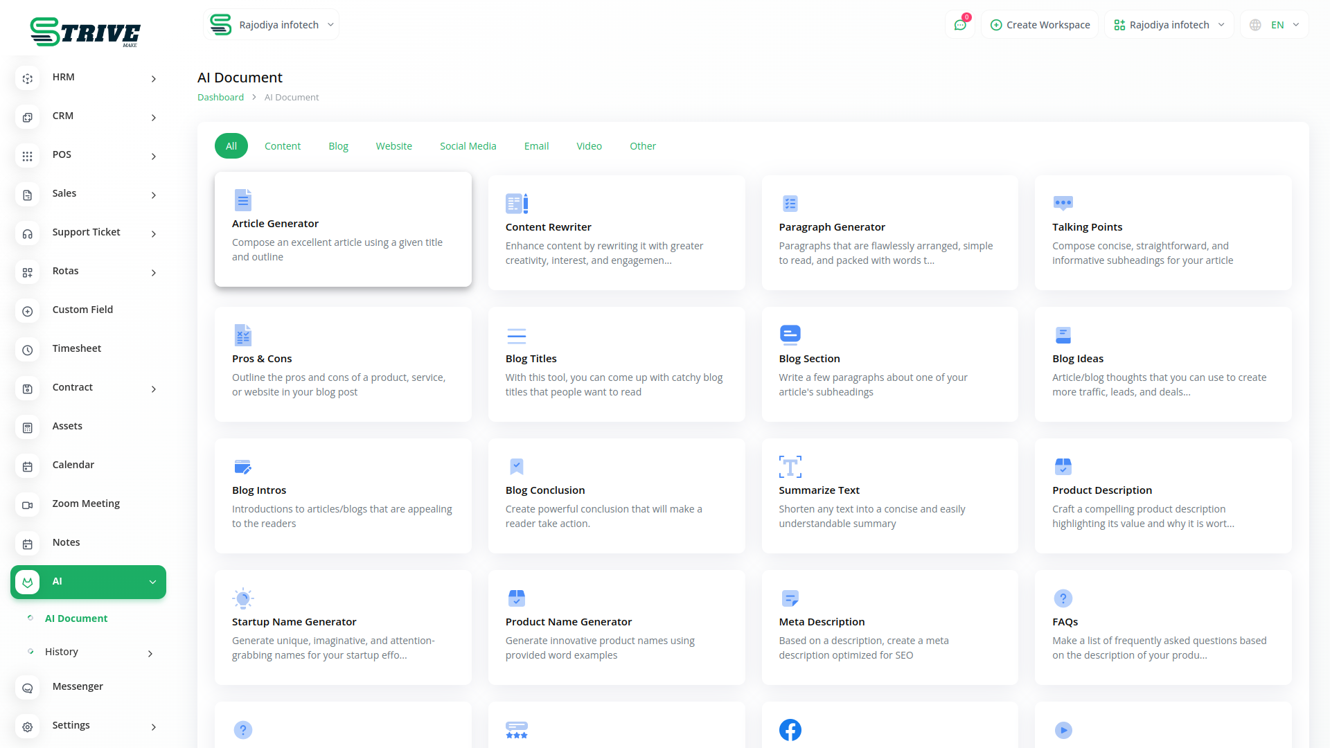 With StriveMake, you can conveniently manage all your business functions from a single location.