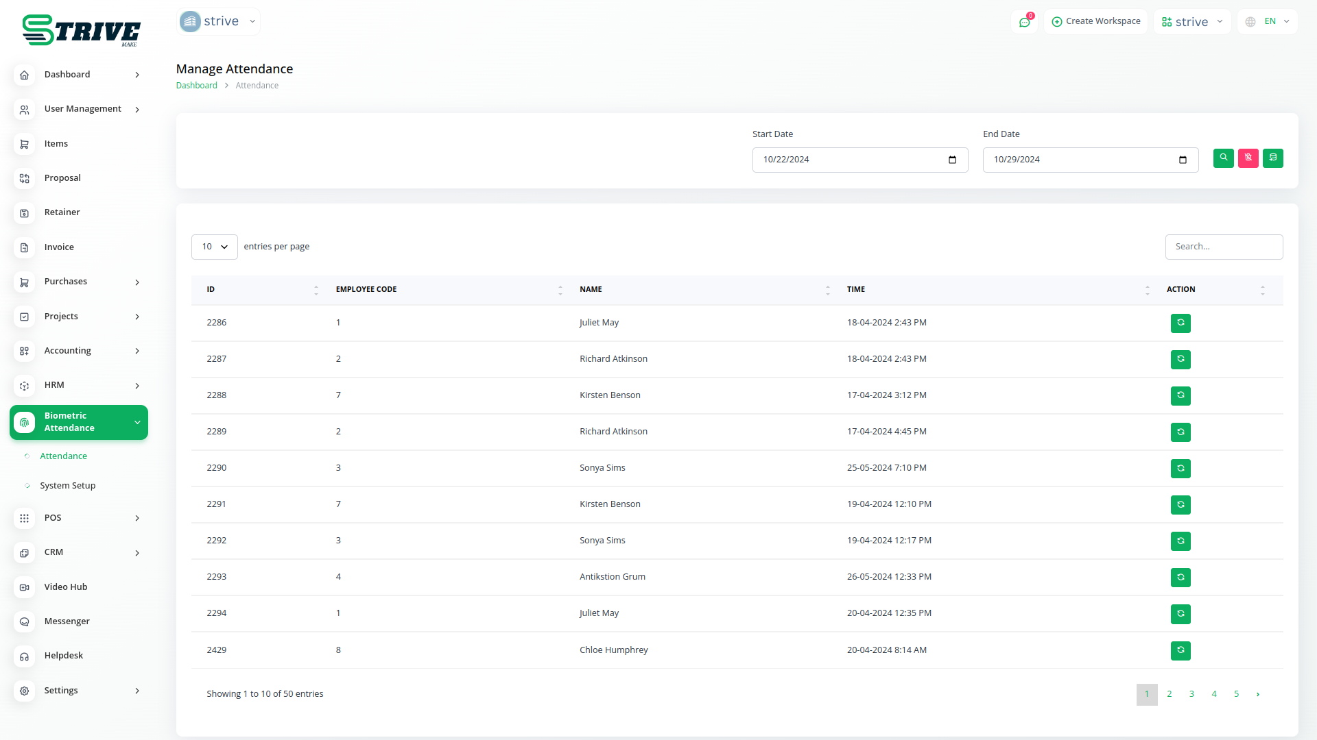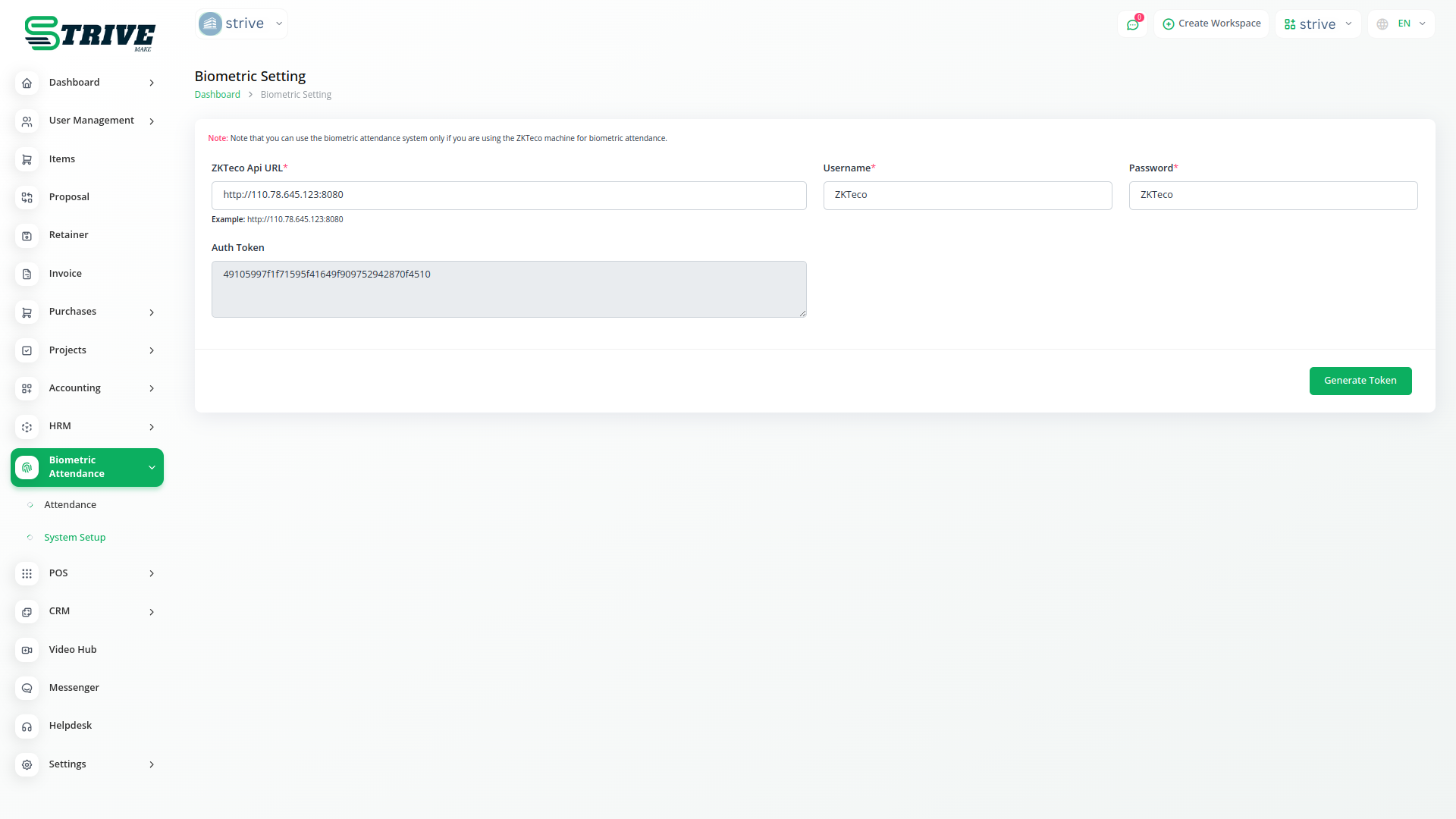Customize your attendance management system with StriveMake by configuring working hours, overtime rules, and holiday calendars, but exclusively available with ZKTeco software integration. By entering ZKTeco API credentials, an auth token is generated, enabling seamless integration with the StriveMake biometric attendance module. Once integrated, you gain full control over system settings, and attendance history is conveniently presented within StriveMake, providing comprehensive insights into your organization's attendance tracking.