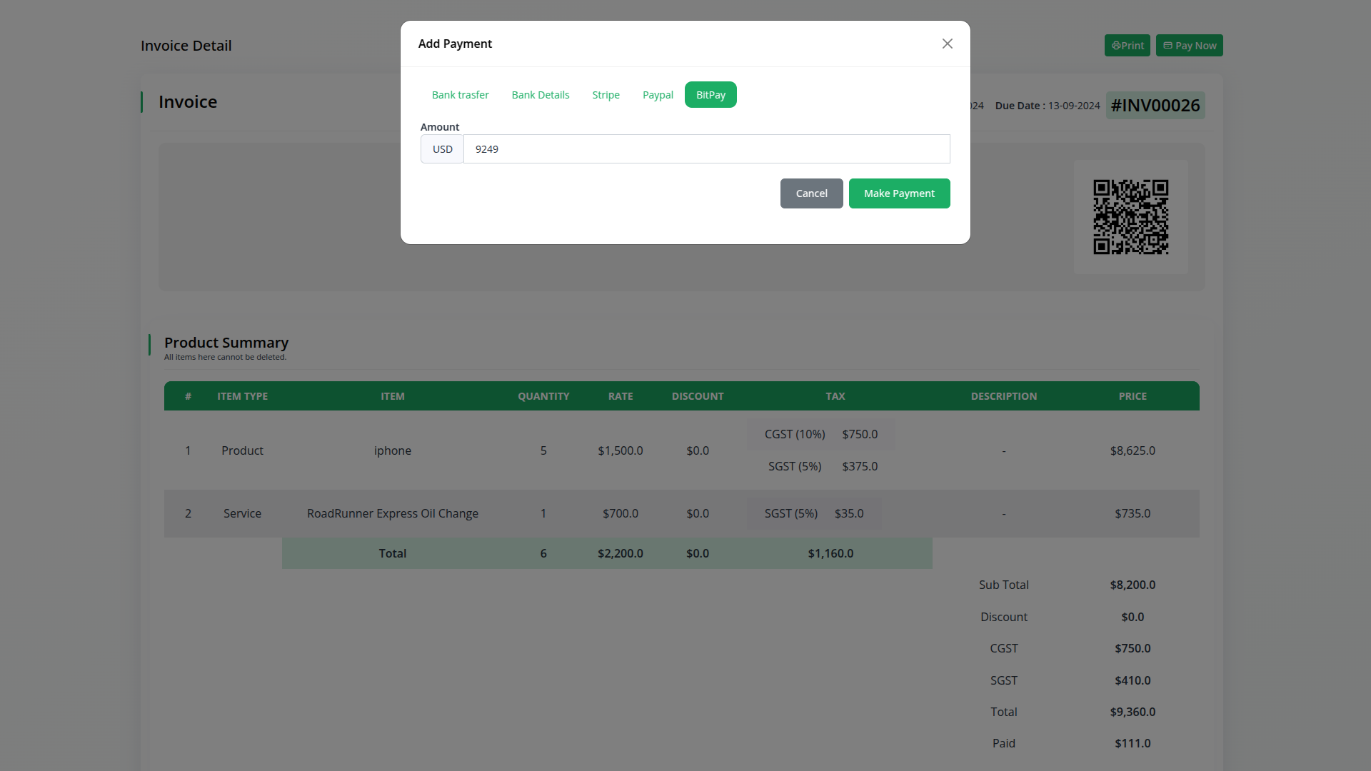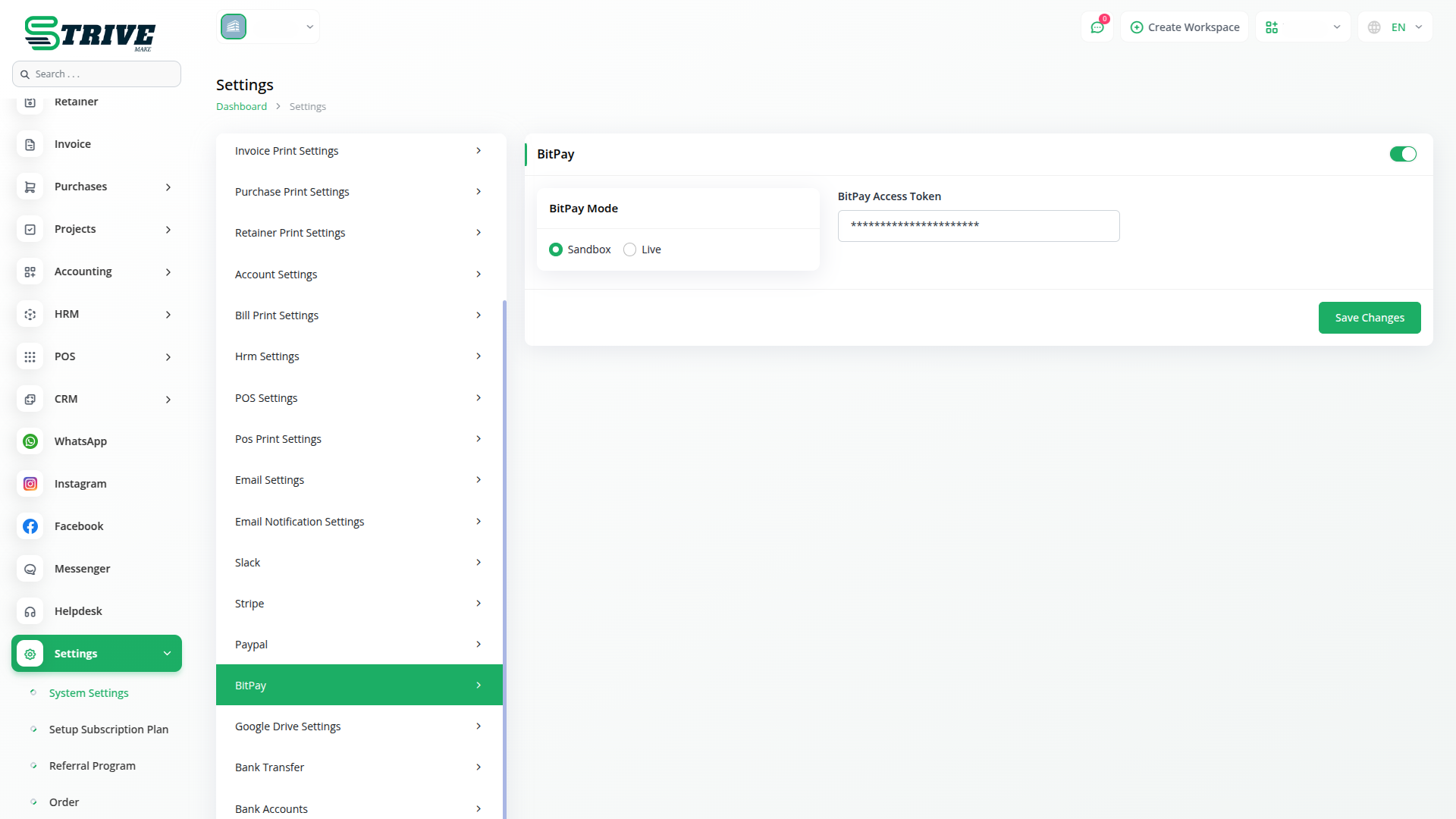 The API Key Settings Page for BitPay Integration allows you to securely connect your application or website with the BitPay payment gateway. By configuring your API keys on this page, you enable your platform to interact with BitPay services, providing seamless payment processing and transaction management. Both Superadmin and Company accounts can utilize this integration, though each has a specific focus. The Superadmin integration is primarily for handling subscription-based payments, while the Company integration handles payments related to invoices and other one-time transactions. Both roles share the same integration setup, ensuring ease of use and consistency across the platform.