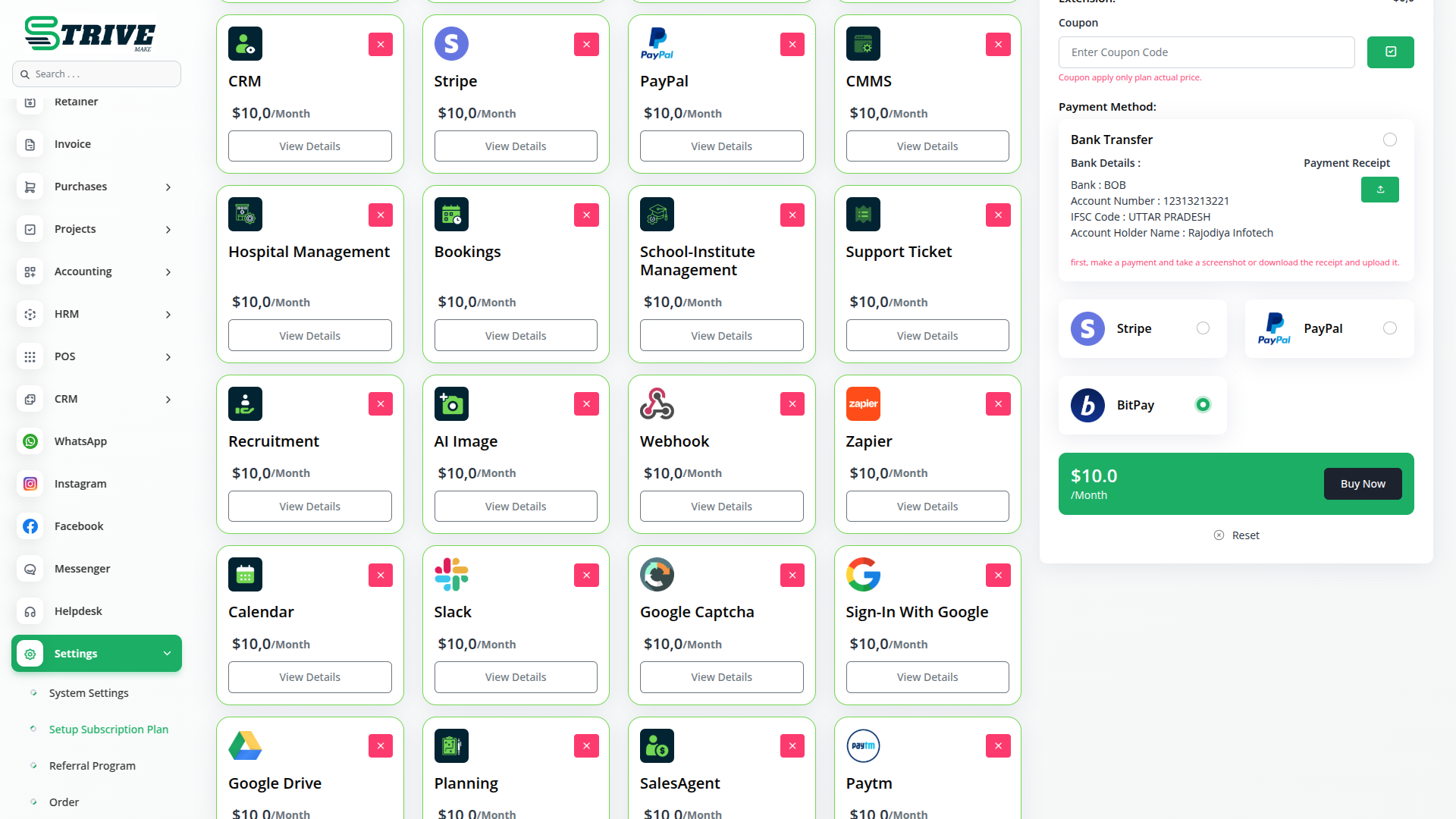 With StriveMake, you can conveniently manage all your business functions from a single location.