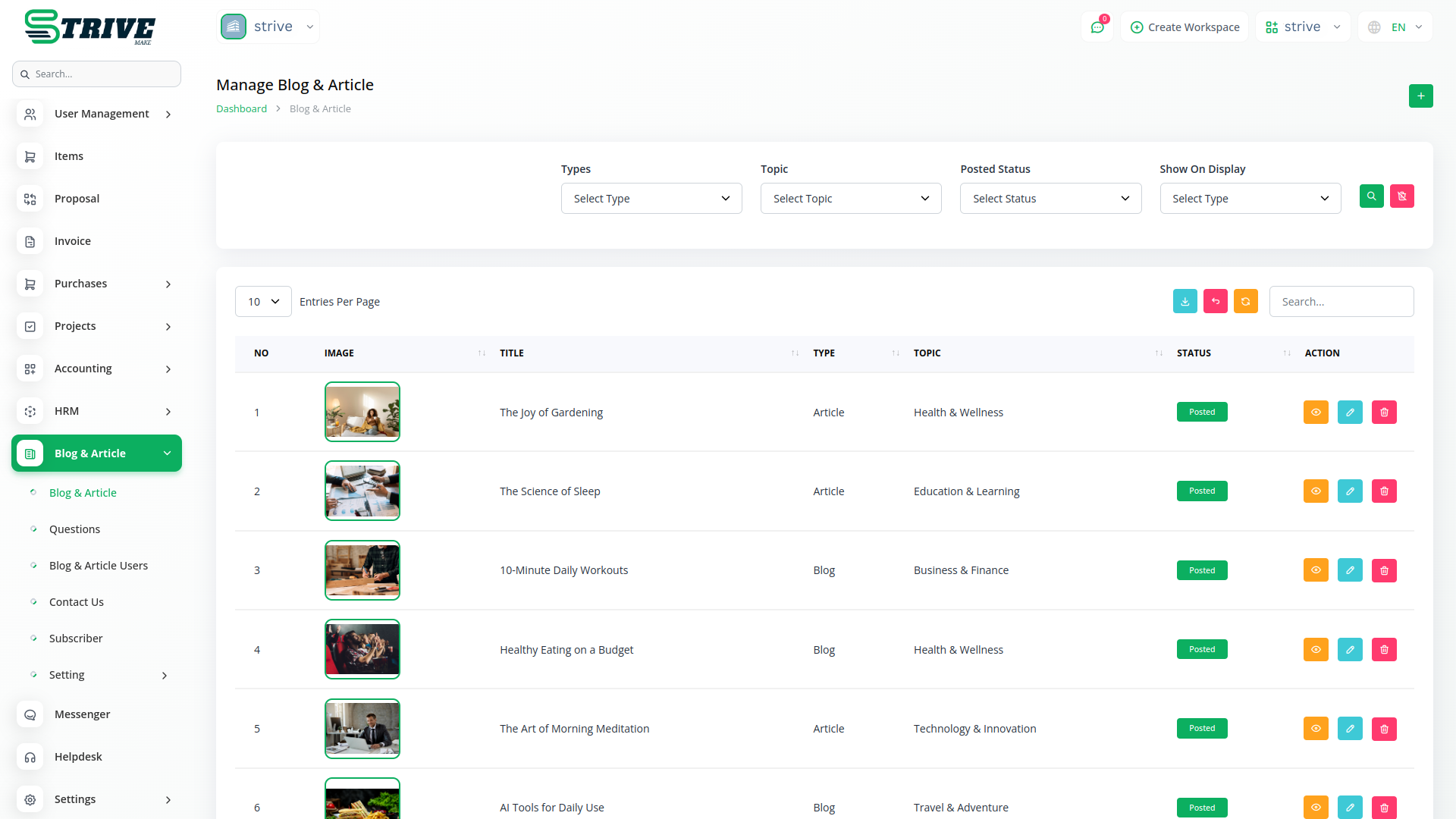 With Strivemake, you can conveniently manage all your business functions from a single location.