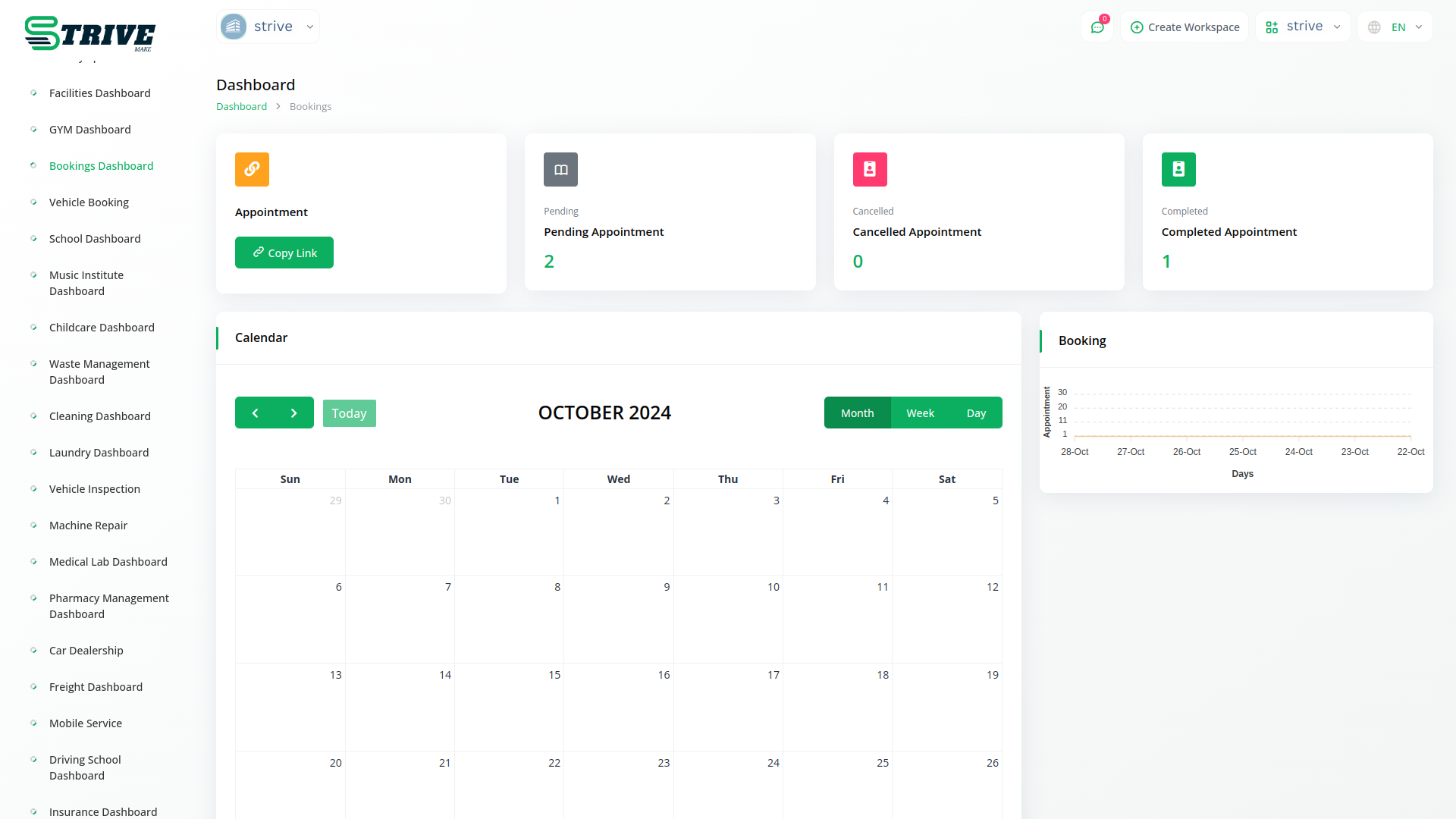 Get valuable insights into your booking trends and business performance with the StriveMake Bookings Module/s analytics. Track important metrics like appointment numbers, peak booking times, and customer preferences. Use this data to make better decisions about staffing, marketing, and services. Our simple reports and dashboards give you a clear view of how your booking system is doing, helping you improve efficiency and profitability. Plus, you can manage bookings from both the backend and frontend, giving you complete control and flexibility over your scheduling process.