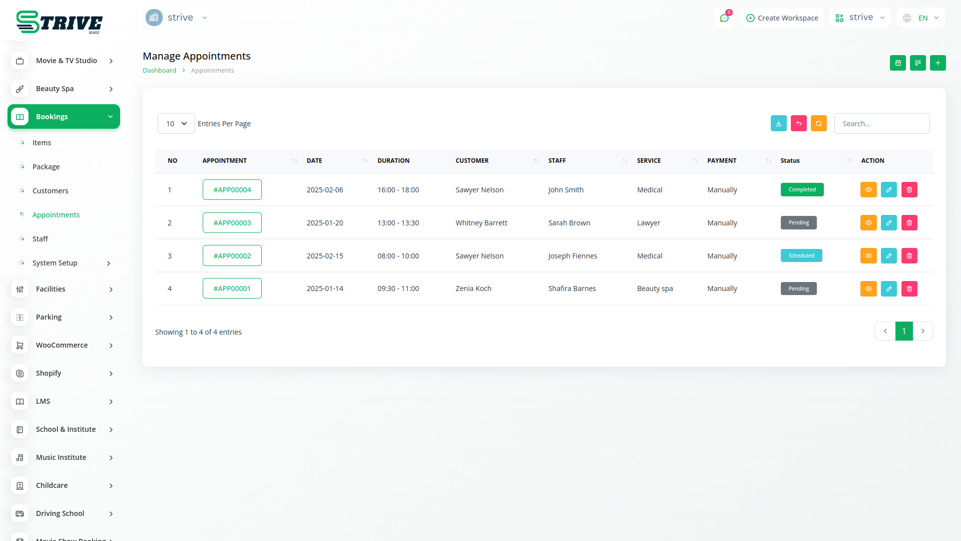 Providing a great customer experience is simple with the StriveMake Bookings Module. Clients can book appointments anytime through an easy online portal. Automatic confirmations and reminders help reduce no-shows, keeping everyone informed and prepared. The seamless integration with your website and social media allows clients to book services without leaving their favorite platforms, making the process smooth and convenient.