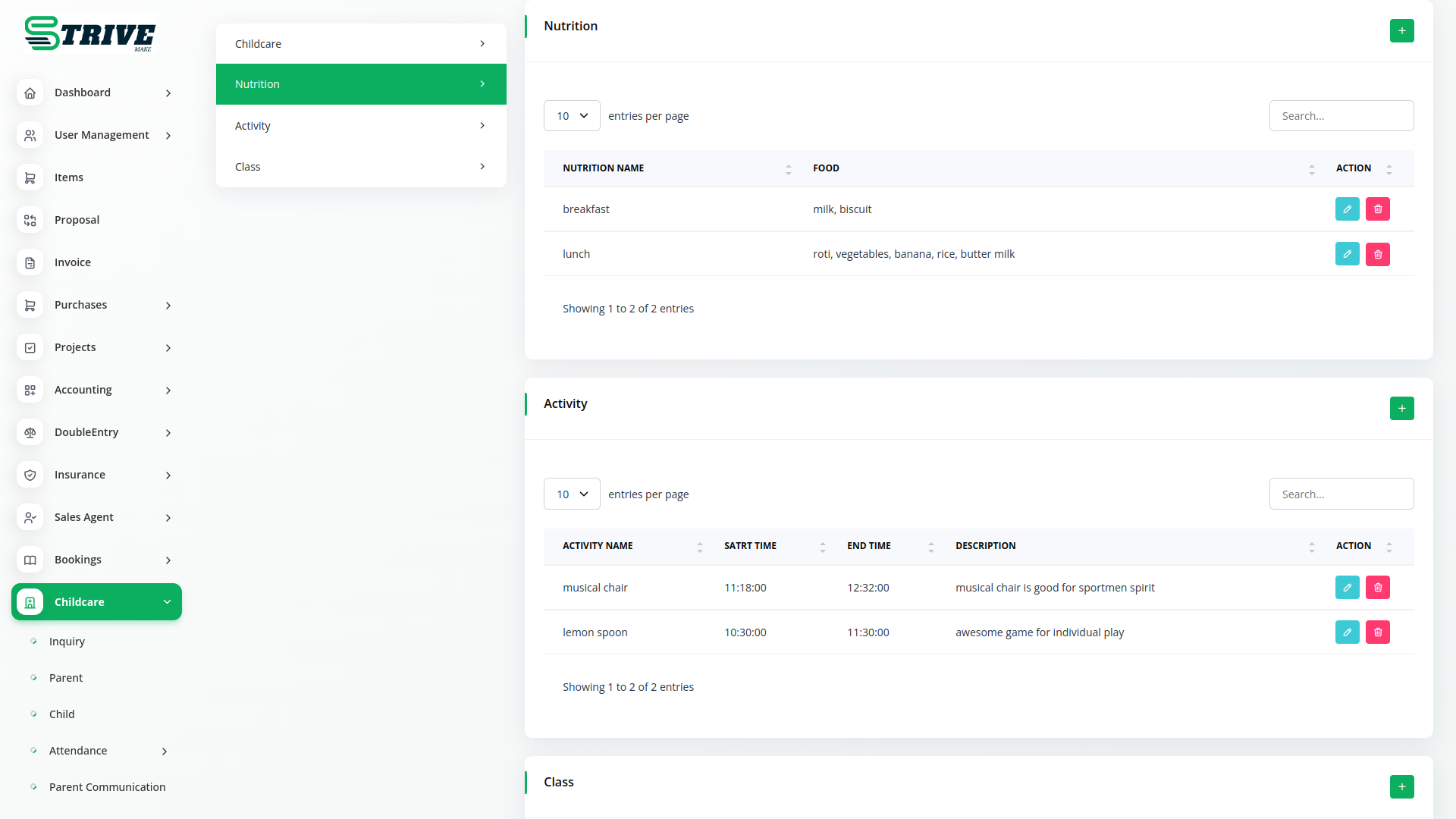 Elevate your preschool or nursery operations with the streamlined efficiency of the Childcare Management Module in StriveMake.