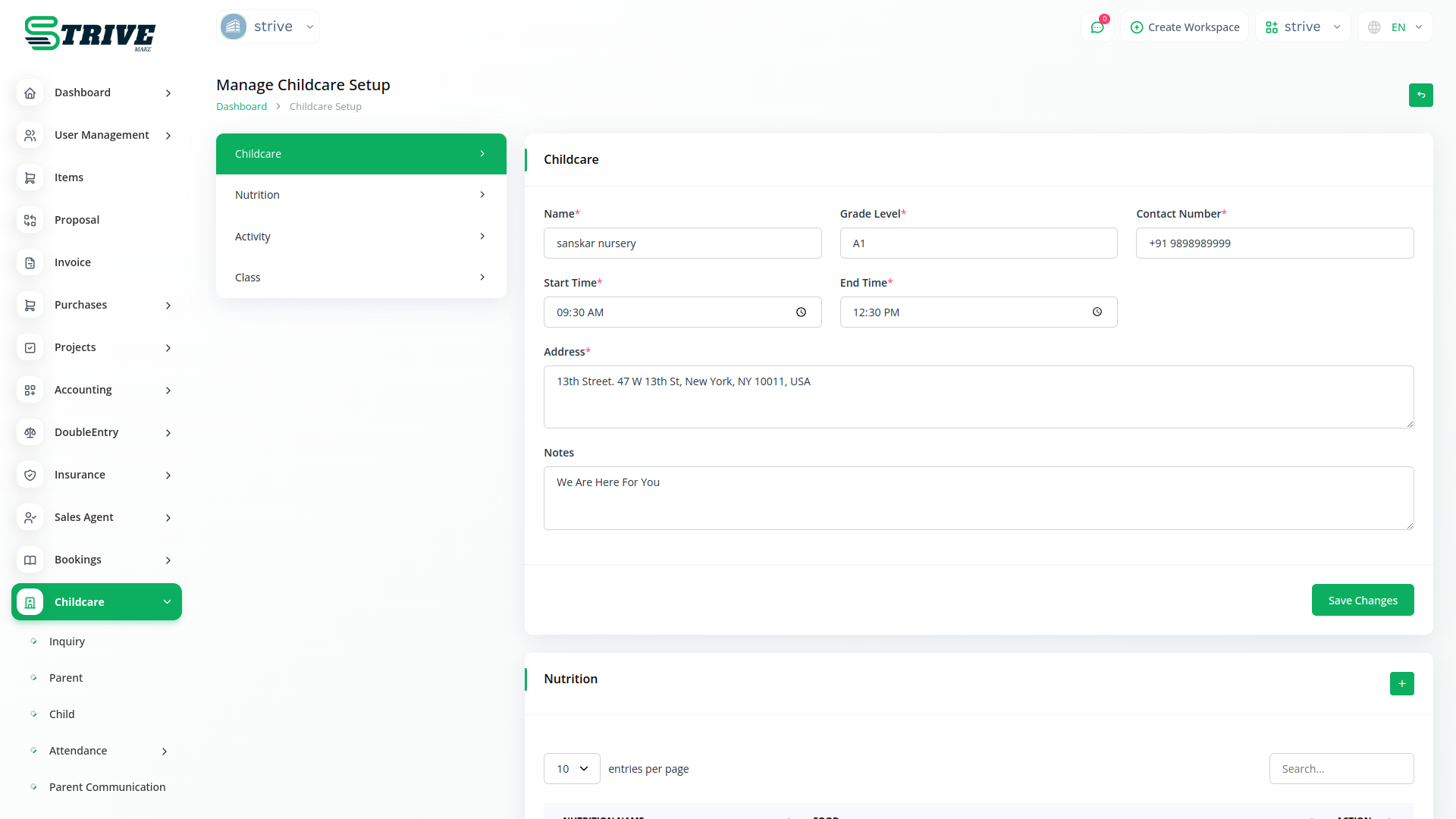 In conclusion, the Childcare Management Integration in StriveMake empowers preschools and nurseries to efficiently manage every aspect of childcare administration. From attendance tracking to communication with parents and streamlined administrative tasks, this module provides a comprehensive solution for enhancing the quality of early childhood education. Embrace the future of preschool management with the Childcare Management Module and provide young learners with the nurturing environment they deserve.