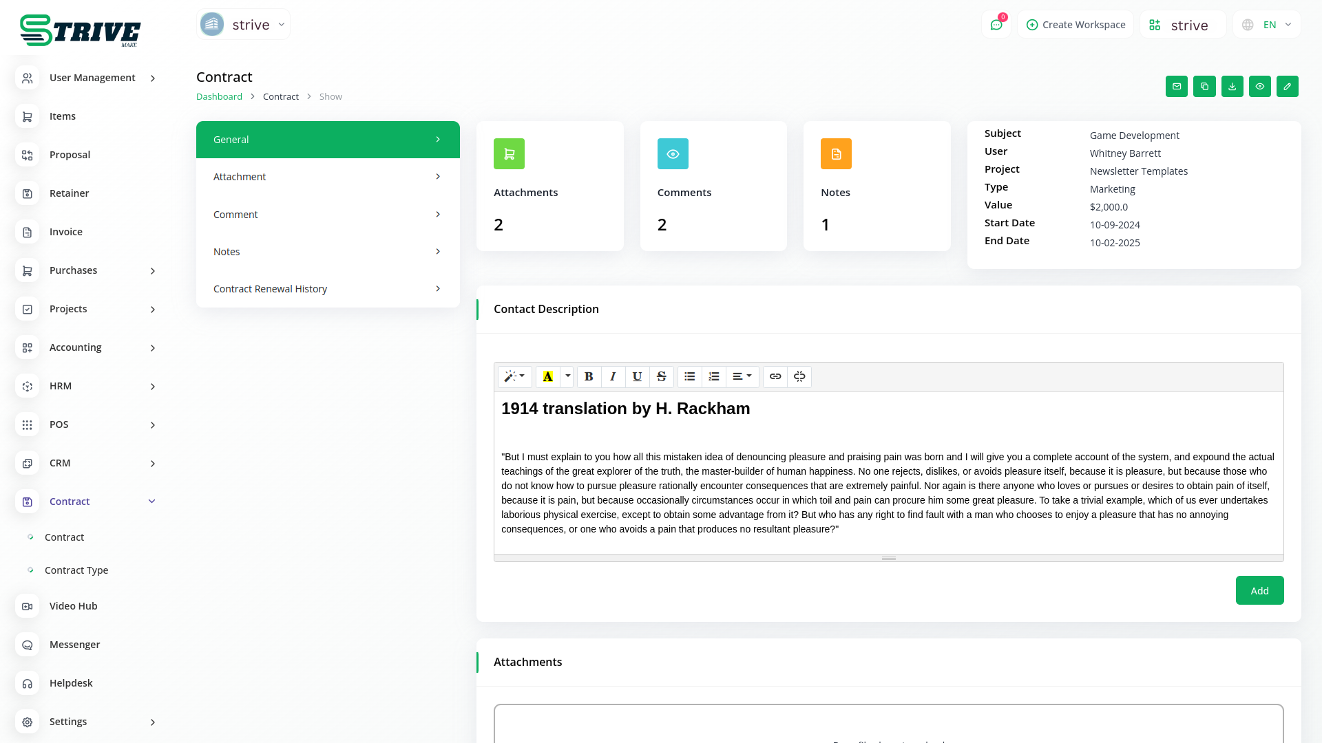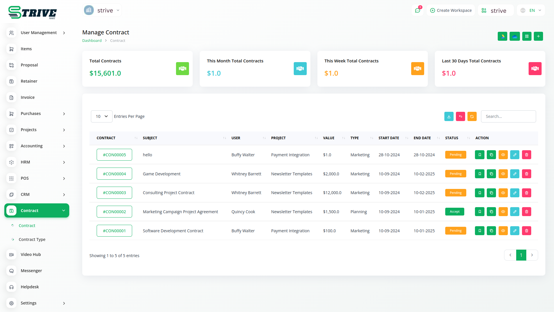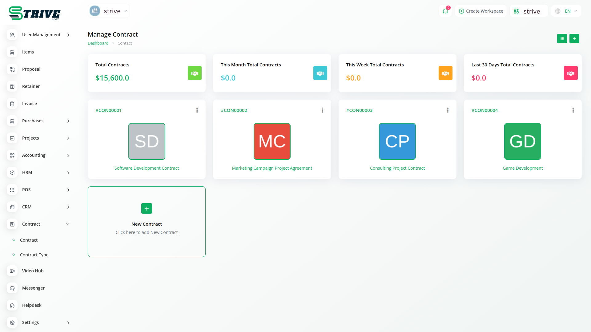 Contract Module is very helpful for proper documentation of the contracts done with clients showing the type of contract, the value, and time duration. The predefined settings can be done/ updated through Setup.