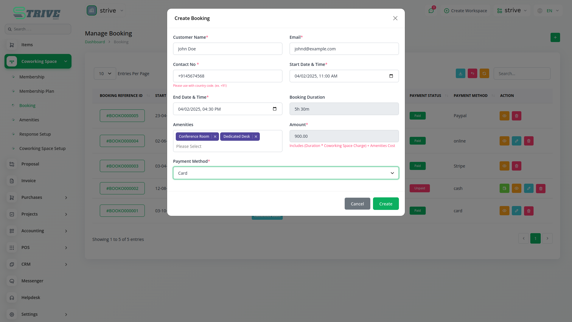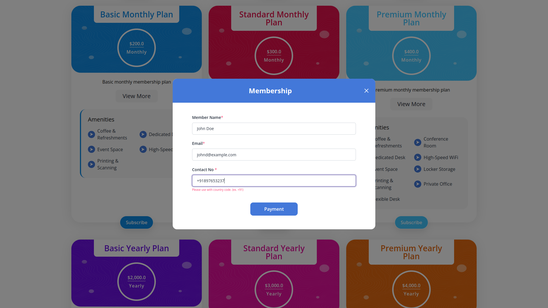 The Coworking Space Management Add-On is designed with an intuitive frontend, ensuring a seamless experience for both administrators and members. Users can easily browse available membership and booking options with weekly, monthly, and yearly plans. Bookings are based on duration, with automated price calculation for selected amenities. Secure payments are available through cash, Stripe, PayPal, and more.