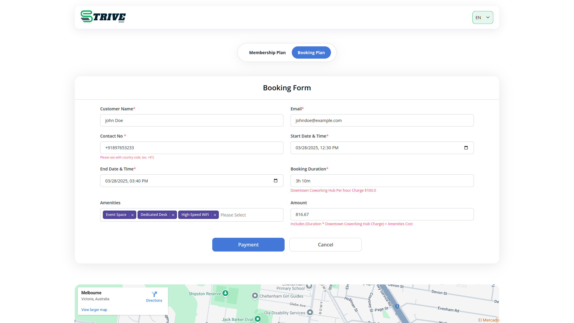 Streamline your coworking bookings with our intelligent system that calculates duration from start and end times, dynamically applying hourly pricing and amenity charges. Enjoy seamless booking management with secure payment processing and efficient allocation for each reservation.