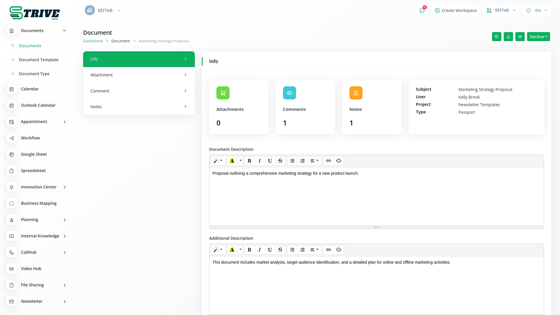 Effortlessly organize and access documents in one place with StriveMake Documents Integration, allowing easy attachment, commenting, and note-taking for enhanced collaboration