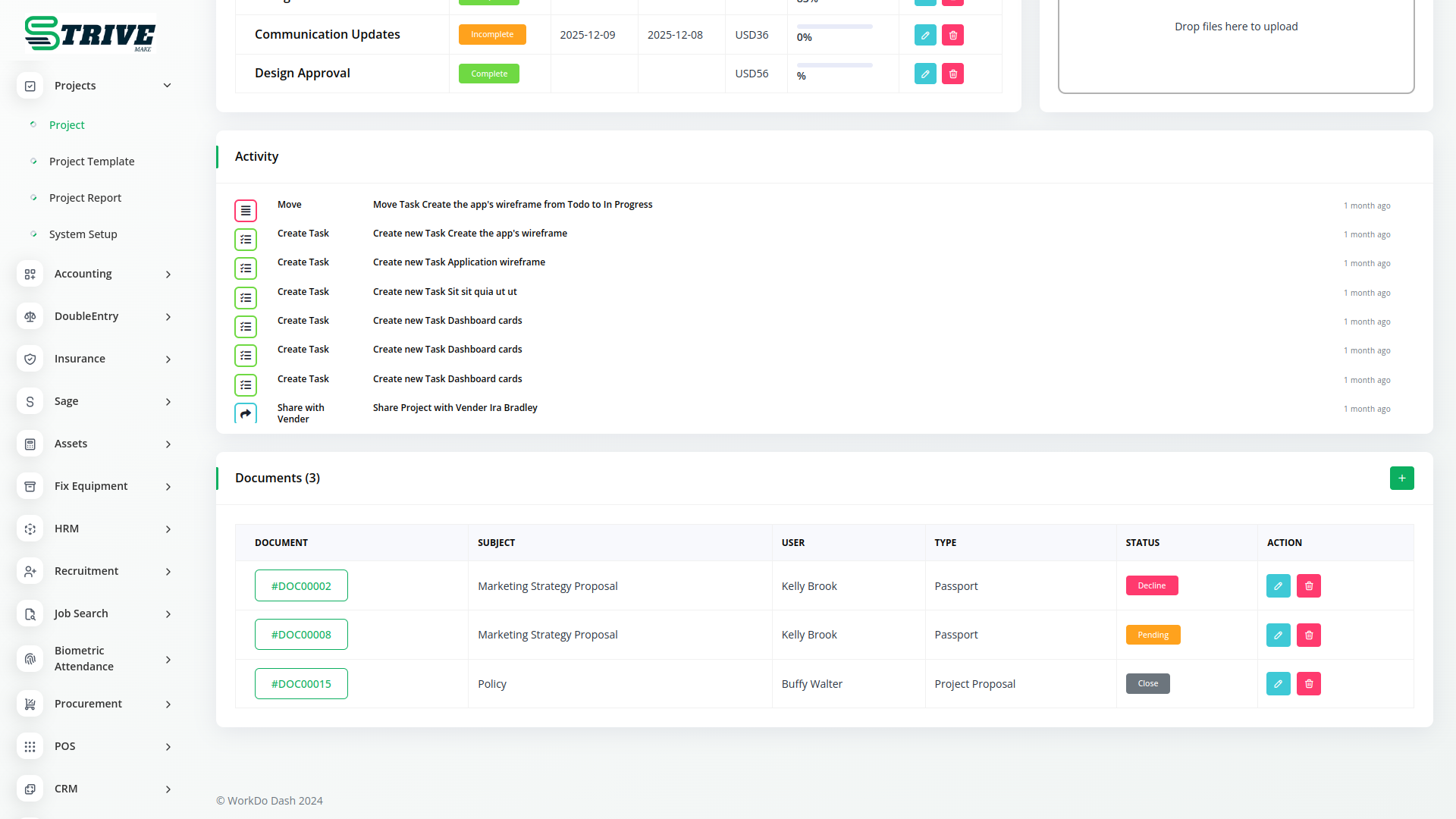 Experience the seamless integration of StriveMake Documents Integration with the Project Module, revolutionizing project document management. Effortlessly link project-related documents, streamline collaboration, and enhance transparency within your project teams. With centralized document organization and project-centric features, empower your teams to achieve greater productivity and efficiency in project execution.