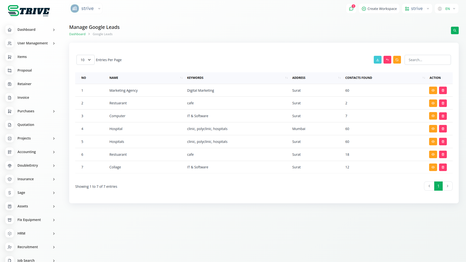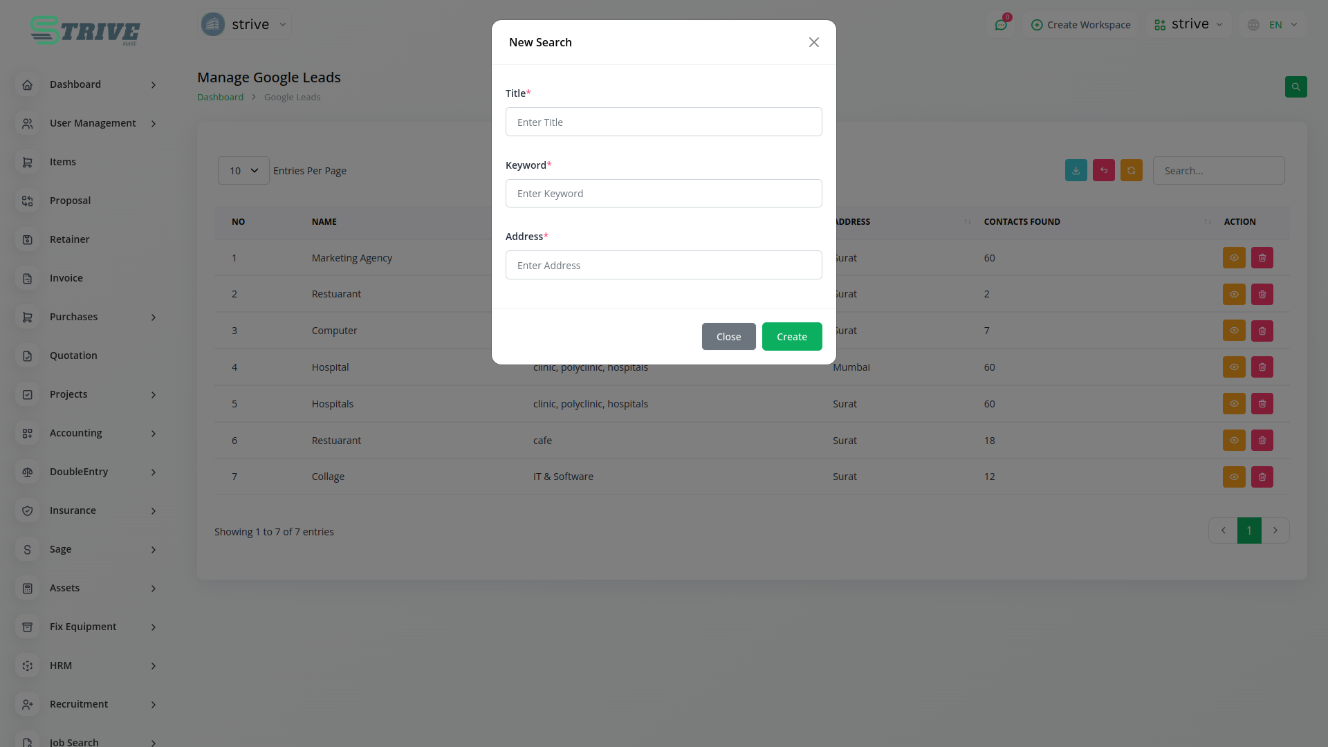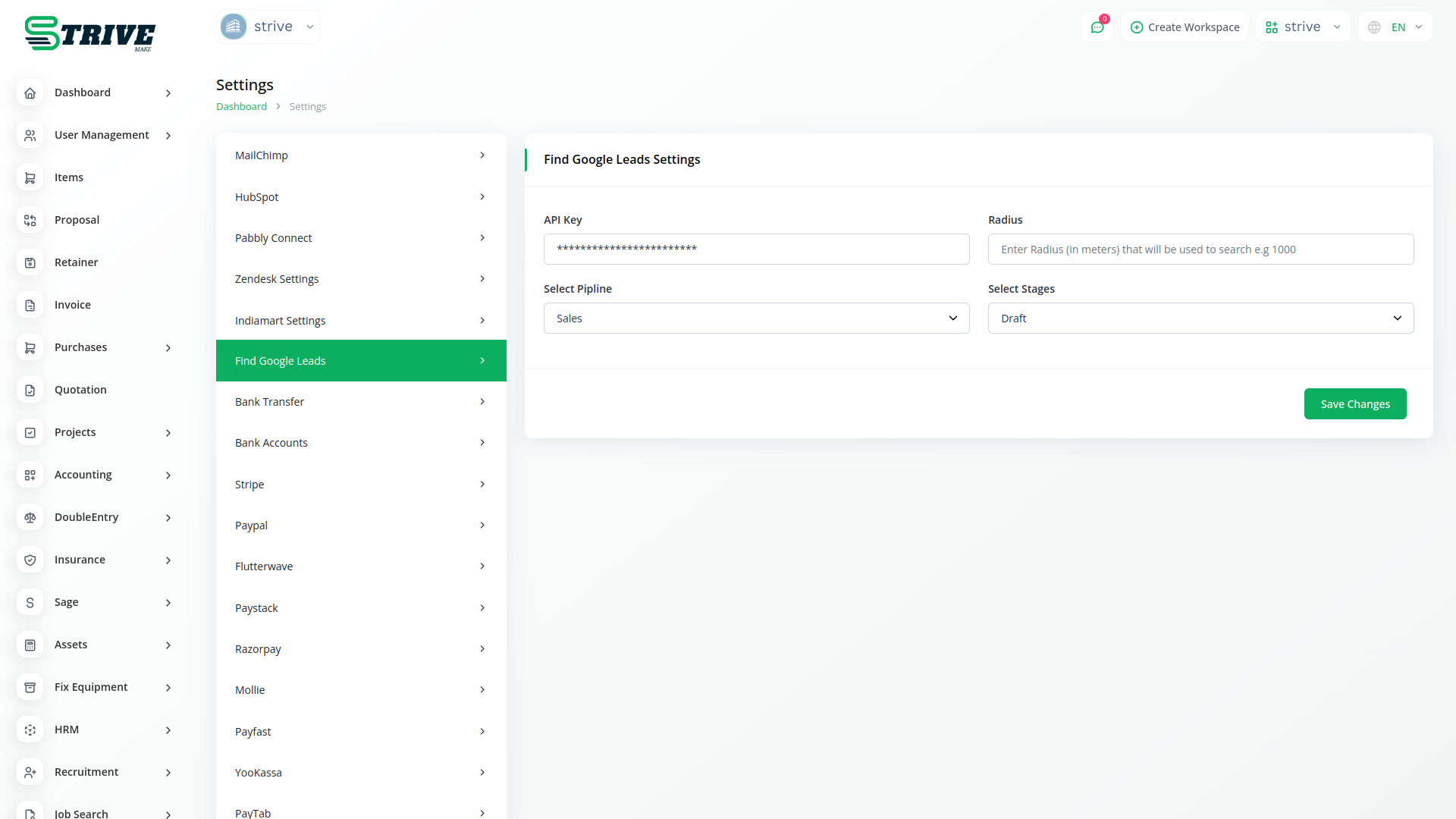 With our integration, users can seamlessly manage leads by inputting their Google API key and setting the desired search radius. This automation feature saves valuable time and ensures that users can quickly identify leads within their target geographic area. By centralizing lead management within StriveMake, users can access and process Google leads alongside other lead sources, creating a unified and efficient workflow.