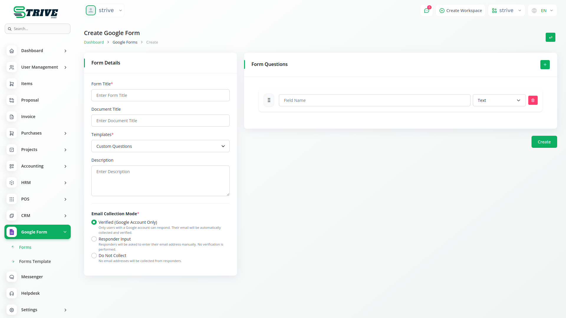 Create comprehensive Google Forms with advanced customization options, including form titles, document titles, and detailed descriptions. The system supports multiple email collection modes, including verified emails, responder input, and no collection options. Users can build forms with unlimited questions using various field types such as text, paragraph, multiple choice, checkboxes, and dropdown menus. All forms are automatically synchronized with your Google Forms account. The form builder includes template integration, allowing users to apply pre-built question sets and customize them according to specific requirements.