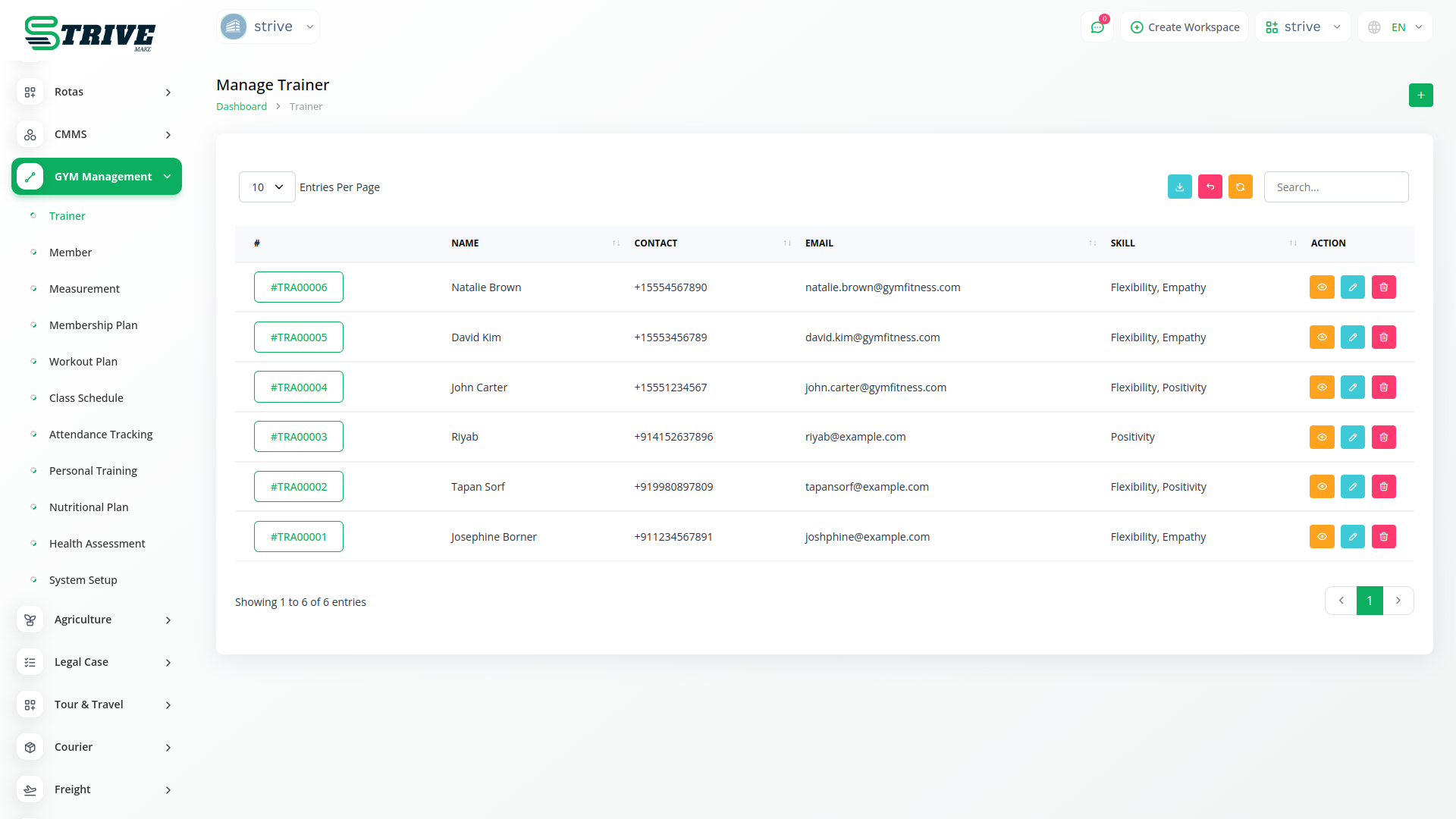 Your trainers are the heroes of your fitness journey, and StriveMake GYM Module lets you keep them in check. Easily see who is training, know their skills, and make sure every member gets the right guidance. It is like having a superhero team to support your fitness goals!