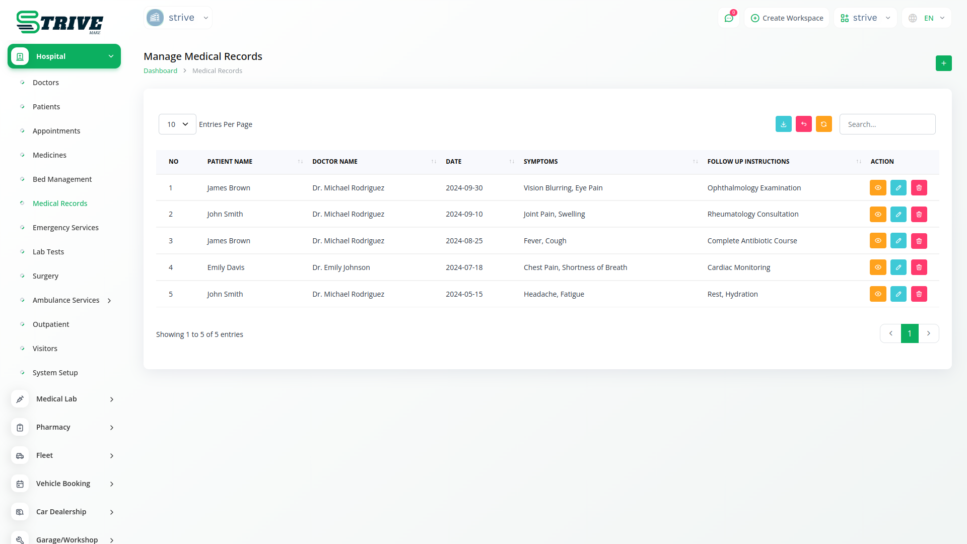 Patient medical records are the backbone of the hospital management system, compiling comprehensive information on Patient Name, Symptoms, Follow-up Instructions, diagnoses, Prescription, Test Results. The integration with Electronic Health Records ensures seamless access to updated patient data, promoting coordinated and informed healthcare delivery.