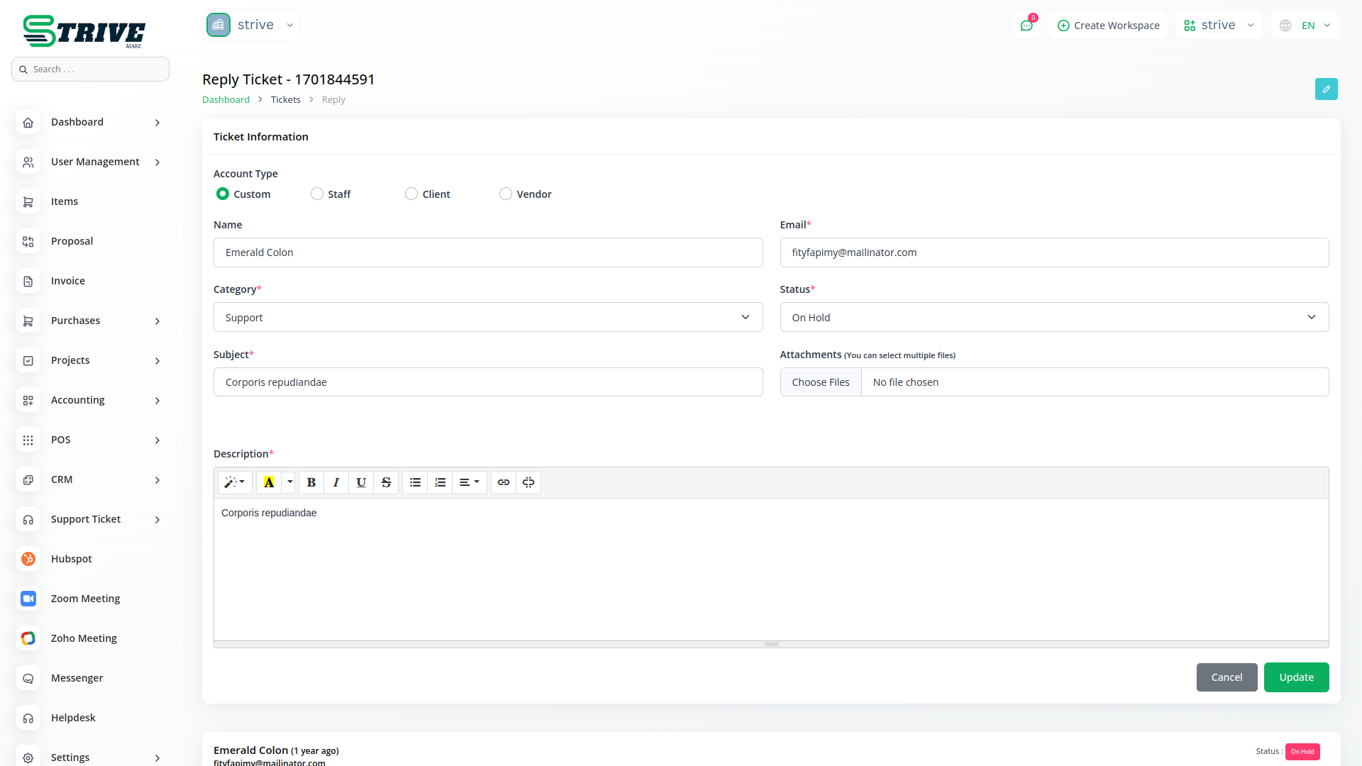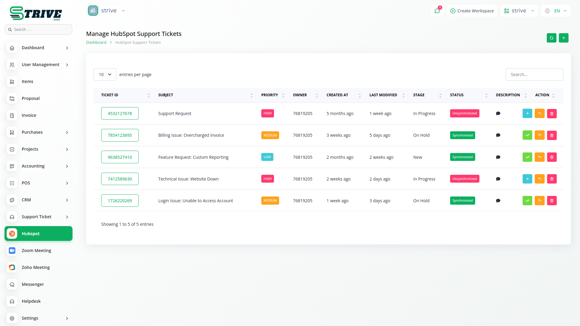 Managing support tickets across multiple platforms can be challenging, but this module eliminates the hassle by automatically syncing all customer support tickets with HubSpot. Any new ticket created in StriveMake is instantly reflected in HubSpot, allowing support teams to track, update, and resolve issues without switching between systems. This ensures a more efficient workflow and reduces the chances of missed or delayed responses.