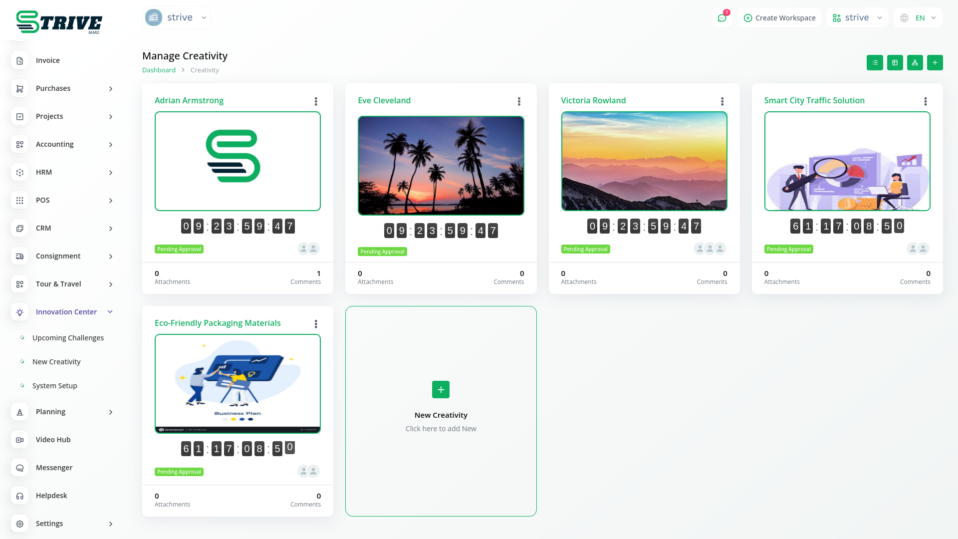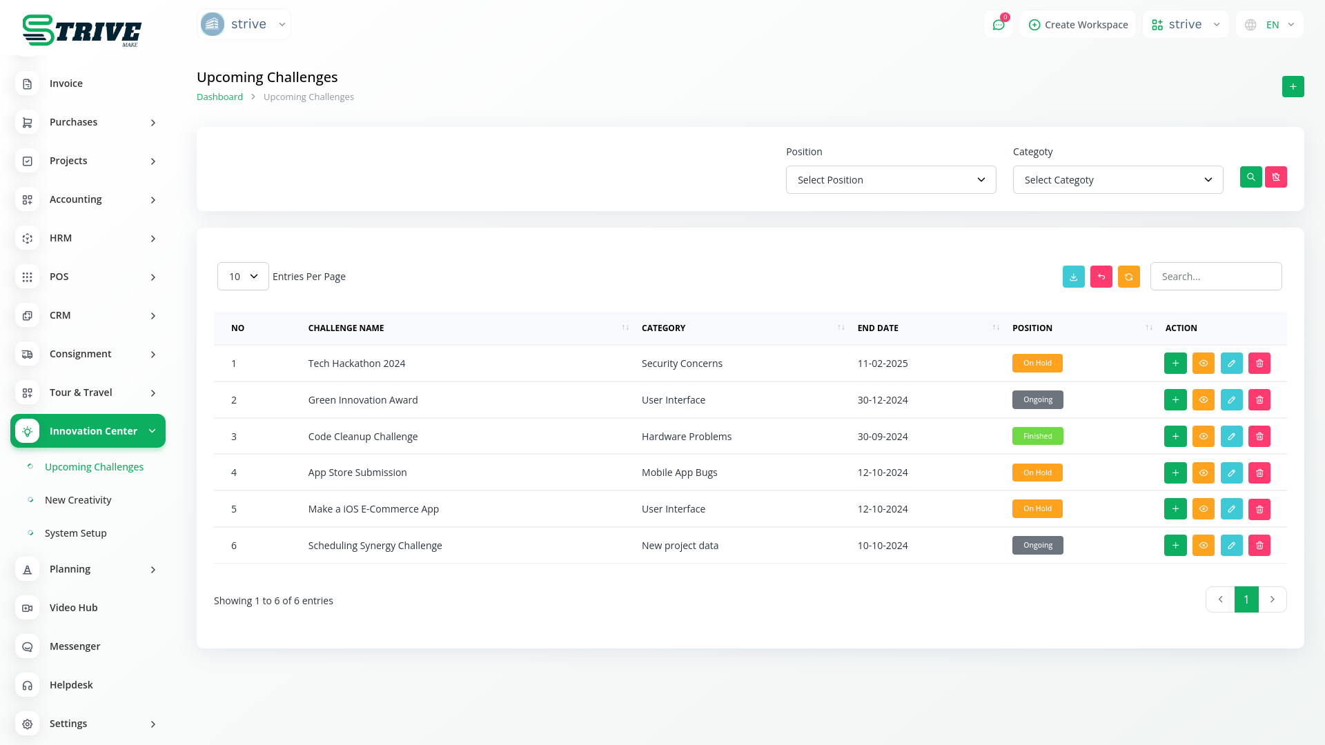In the Innovation Center module, you can create a challenge related to your project, business, or company. You can also set a deadline and provide an explanation and description for that challenge.