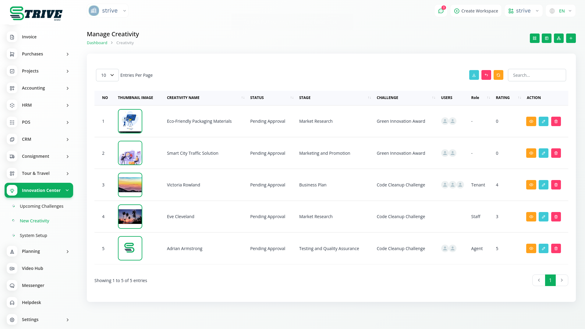 With StriveMake, you can conveniently manage all your business functions from a single location.