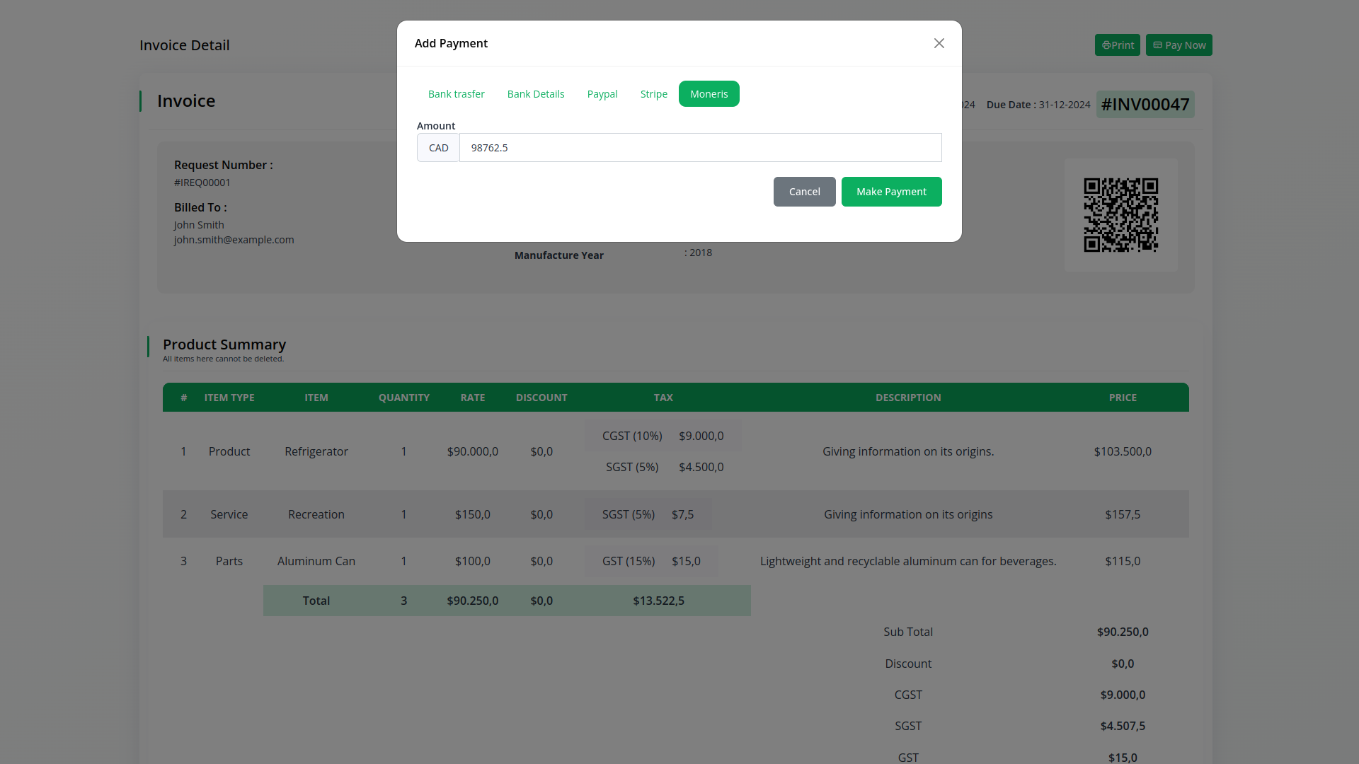 Simplify your billing process with Moneris Payments electronic invoice generation. Create, send, and manage retainer invoices for advance payments and sales invoices for completed transactions with ease. Ensure secure delivery and provide customers with a hassle-free payment experience.