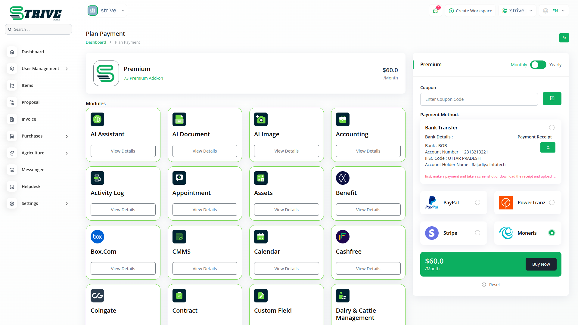 With StriveMake, you can conveniently manage all your business functions from a single location.