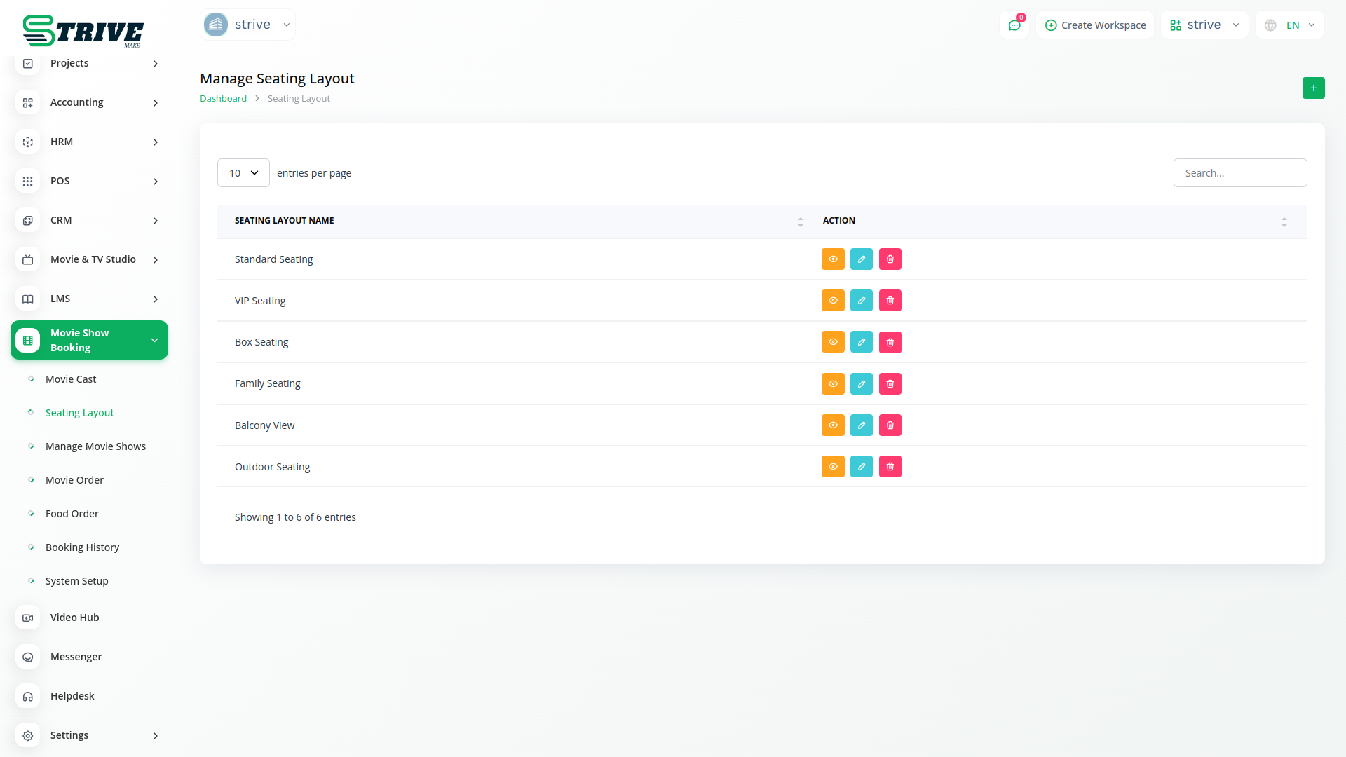 Welcome to StriveMake Movie Show Booking Management Integration, your comprehensive solution for streamlined movie theater operations. With our specialized module, you can effortlessly access movie cast information, customize seating layouts, manage movie shows, and configure your system setup all from one convenient platform.