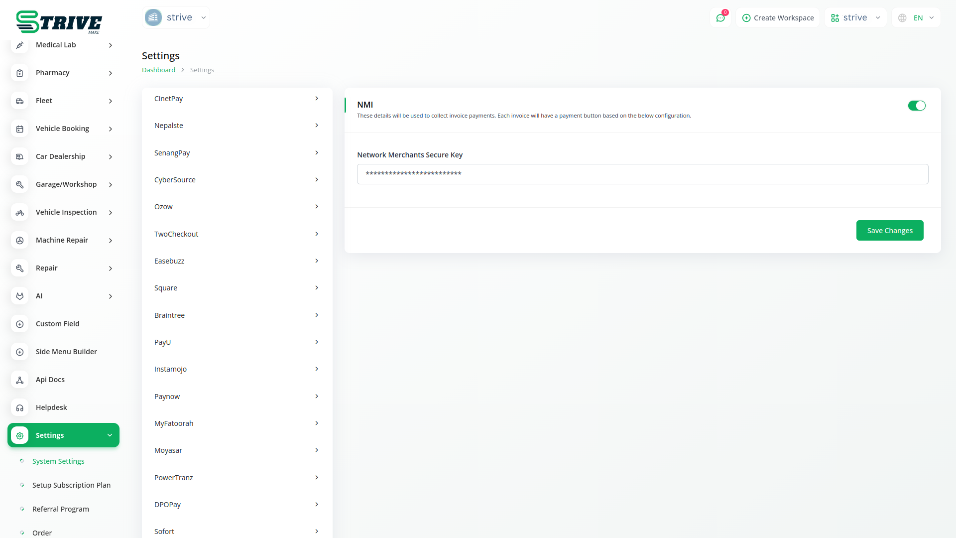 Integrate the Network Merchant payment gateway in StriveMake for secure and efficient transaction processing.
