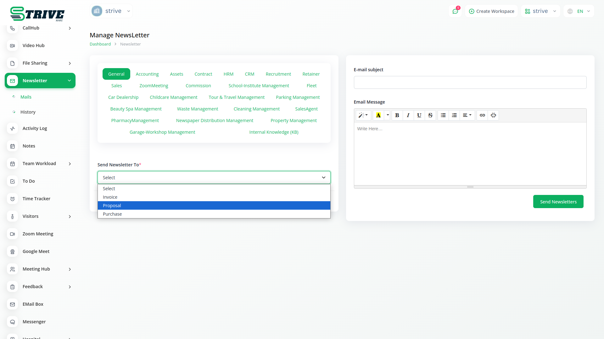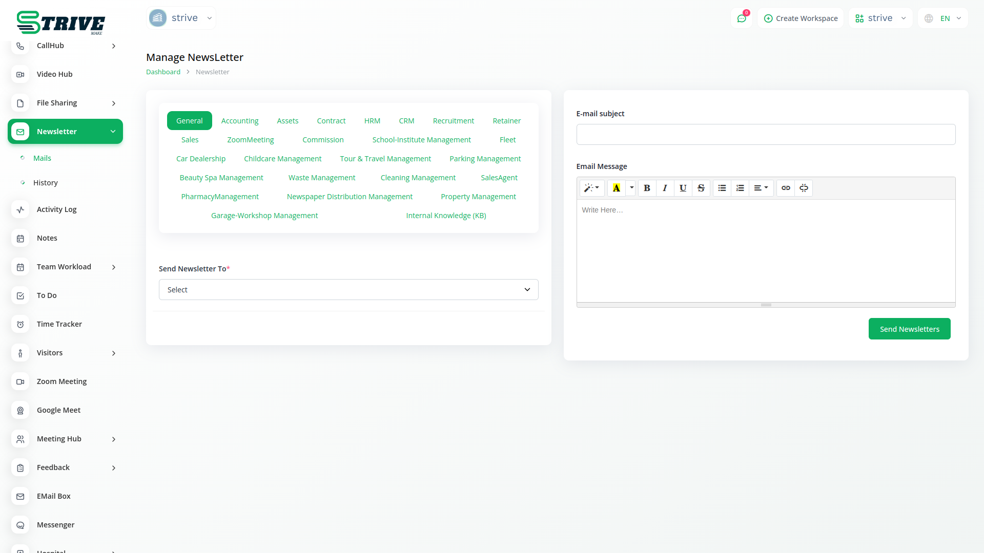 With StriveMake, you can conveniently manage all your business functions from a single location.