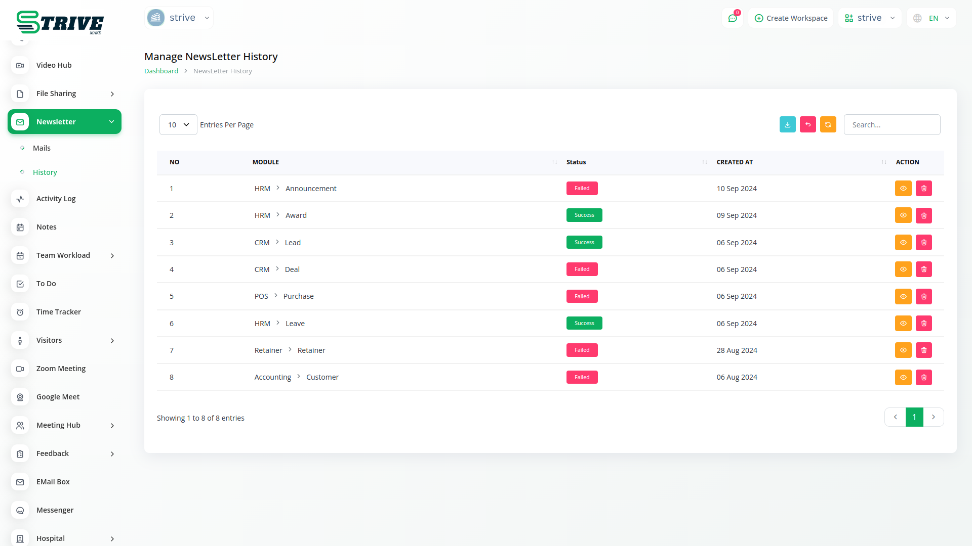 Newsletters provide a history of email statuses, allowing you to see if emails were successfully sent or if there were any issues.Using the history of the newsletter, you can also see how many people have sent the mails and to which time.