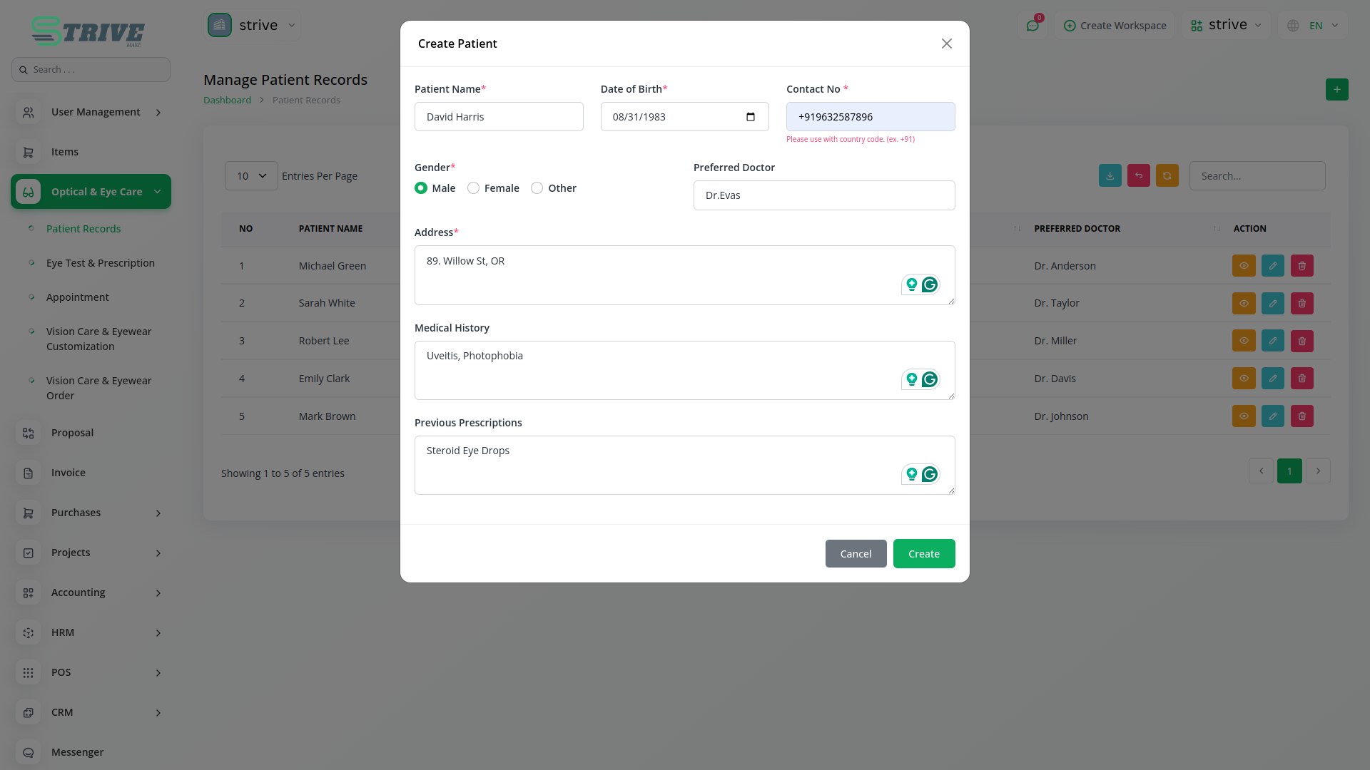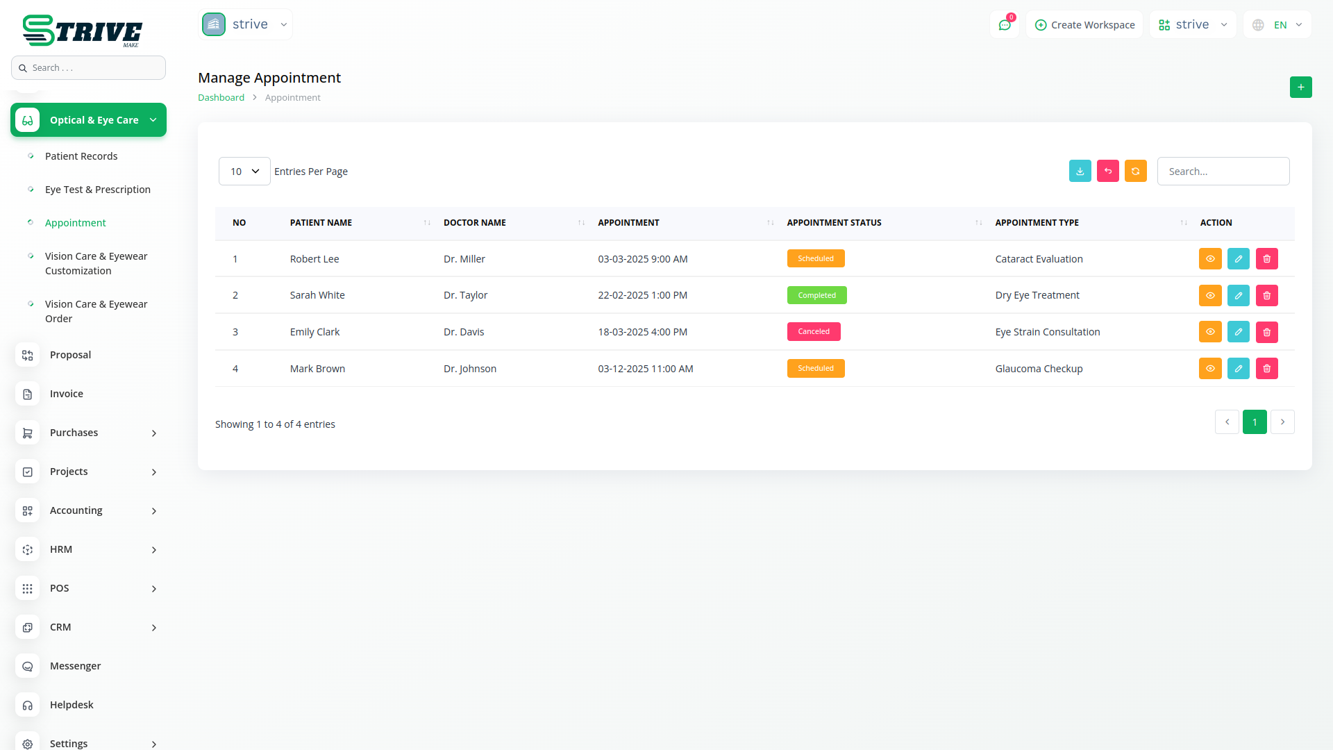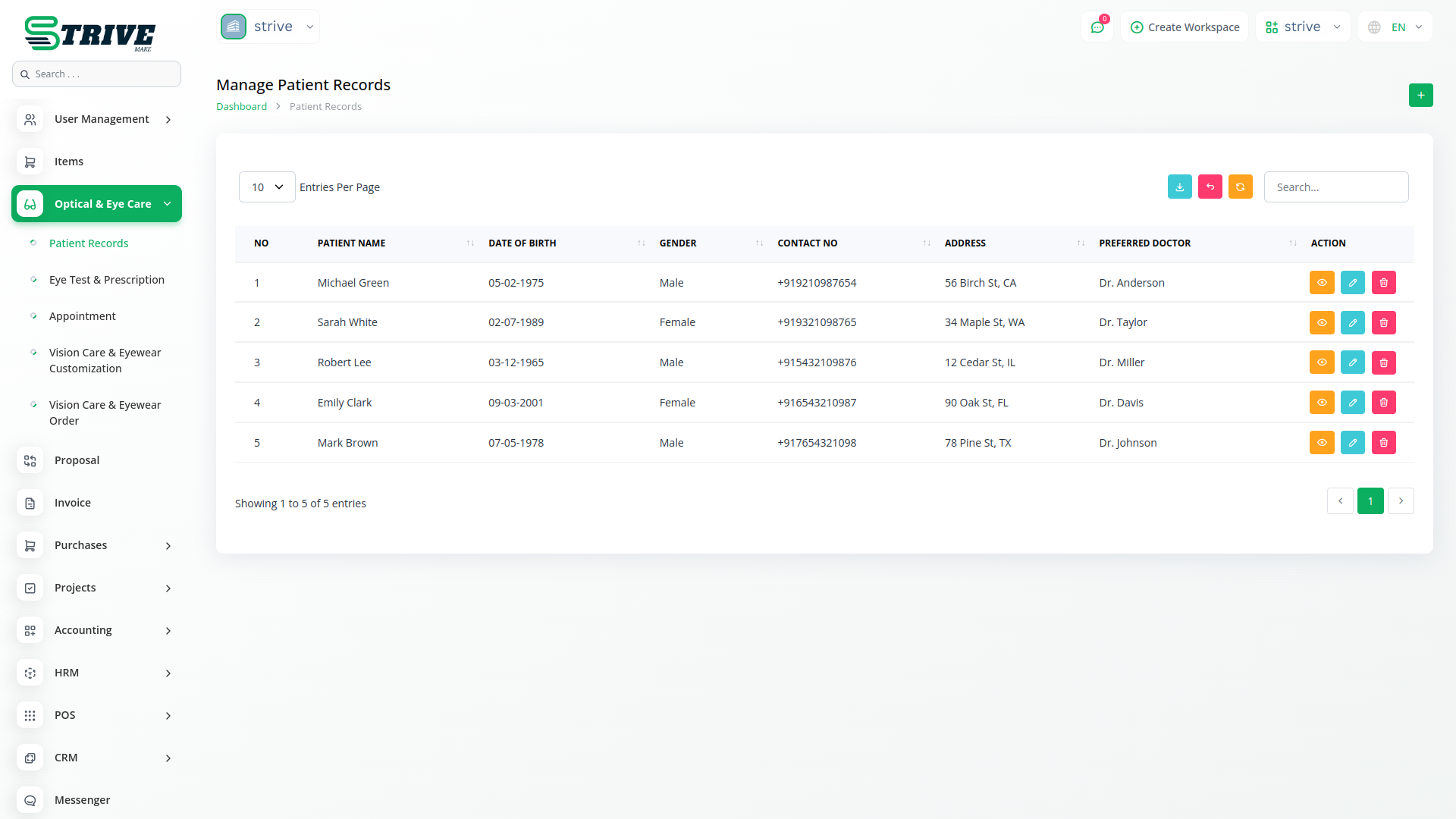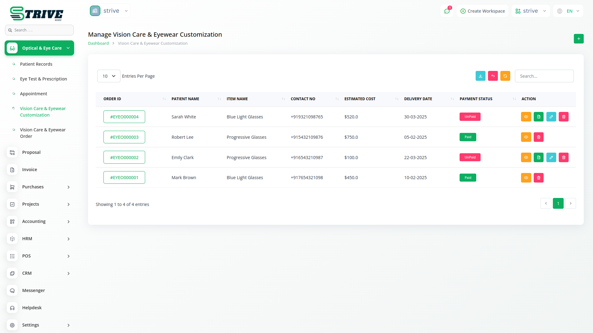 The Optical Care and Eye Care Center module in StriveMake is a powerful solution designed for eye care professionals, including optometrists, ophthalmologists, and optical store owners. This module streamlines the management of patient records, eye tests, prescriptions, and appointments while also supporting vision care services and eyewear customization. By integrating digital tools for record-keeping and patient engagement, it enhances the efficiency of optical care providers, ensuring better service delivery and improved patient experience.
