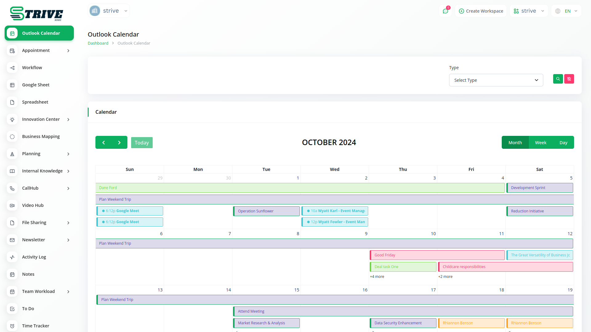 The Outlook Calendar module is designed to integrate seamlessly with other features of StriveMake, creating a streamlined workflow. You can link calendar events with tasks, projects, and other modules within StriveMake, providing a comprehensive view of your work schedule and priorities. This integration eliminates the need for manual data entry and ensures that all relevant information is interconnected. By having all your tools and information in one place, you can focus more on your work and less on managing your schedule, leading to increased efficiency and productivity.
