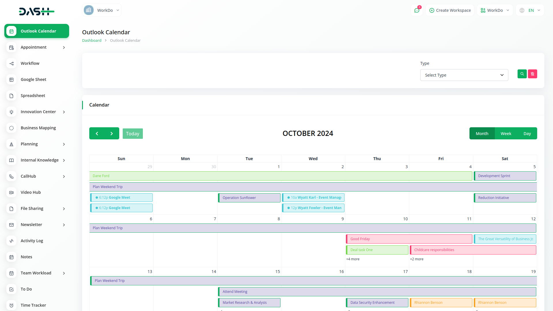 With the Outlook Calendar module, all your scheduling needs are consolidated in one place. This centralized approach simplifies calendar management, allowing you to view and manage all your events within the Dash platform. No more switching between applications or risking outdated information; everything you need is at your fingertips. The intuitive interface makes it easy to add new events.