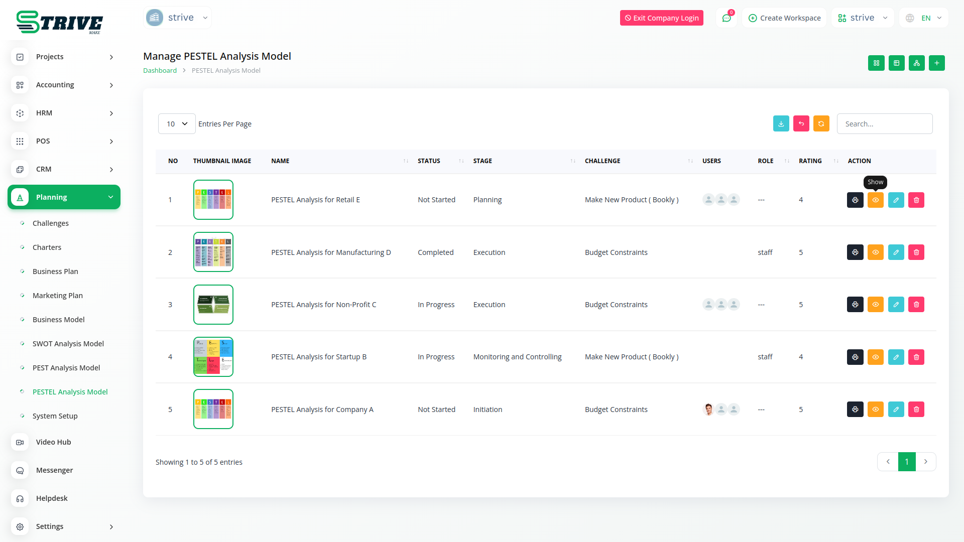 With StriveMake, you can conveniently manage all your business functions from a single location.