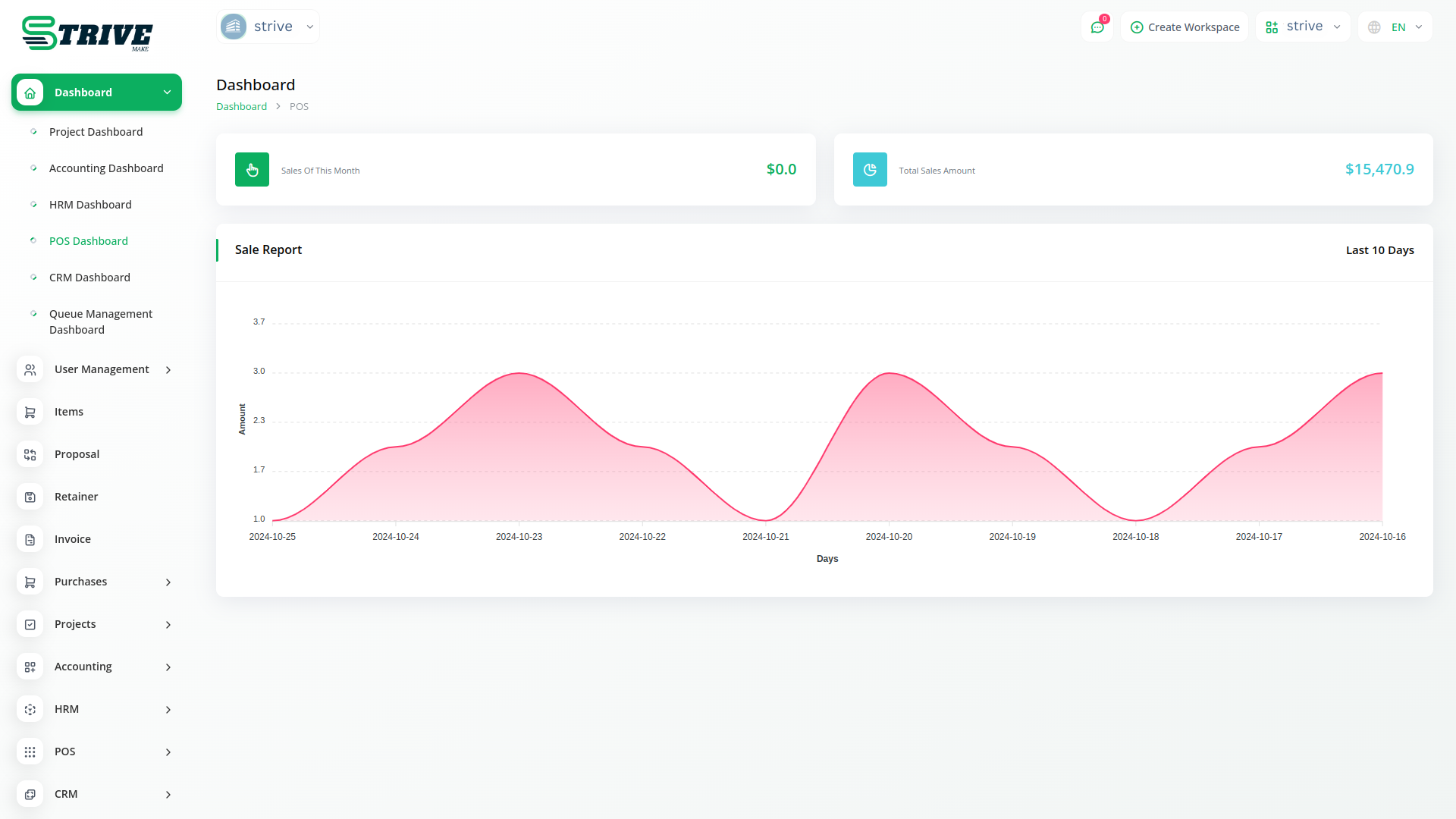 Welcome to the POS Module in StriveMake, your ultimate solution for streamlined sales management. Our platform offers a user-friendly dashboard where you can easily navigate through your sales activities. At the heart of the dashboard is a dynamic chart representing your sales reports, providing valuable insights into your business is performance. Whether you are a small retail store or a bustling restaurant, our POS Module empowers you to efficiently manage your sales process from start to finish.