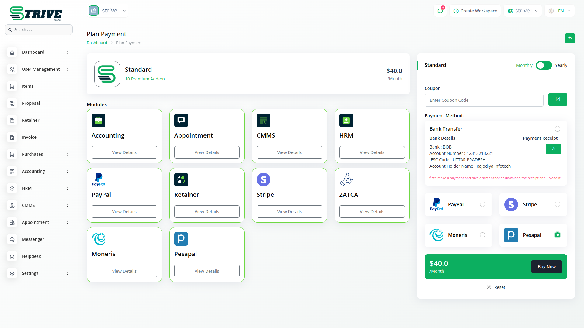 With StriveMake, you can conveniently manage all your business functions from a single location.