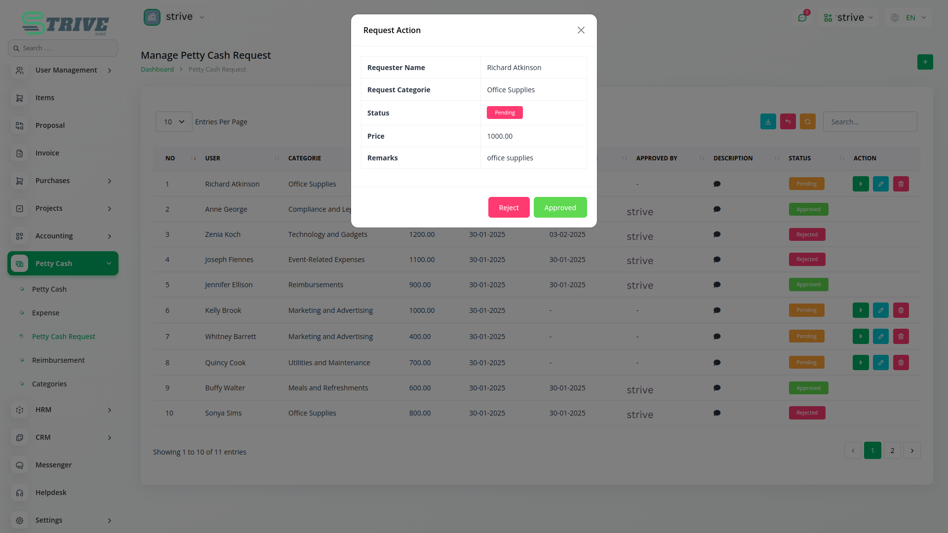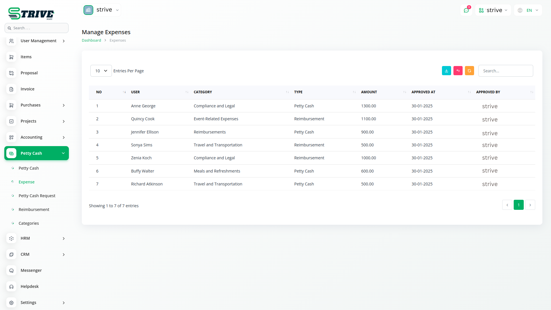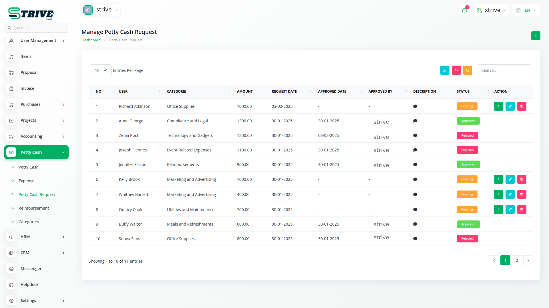 Handling petty cash doesn’t have to be a tedious task. The Petty Cash Management module in StriveMake brings structure and ease to the process. By offering a centralized platform to record and monitor transactions, it helps businesses maintain order and transparency in their day-to-day cash dealings, making petty cash management stress-free and efficient.