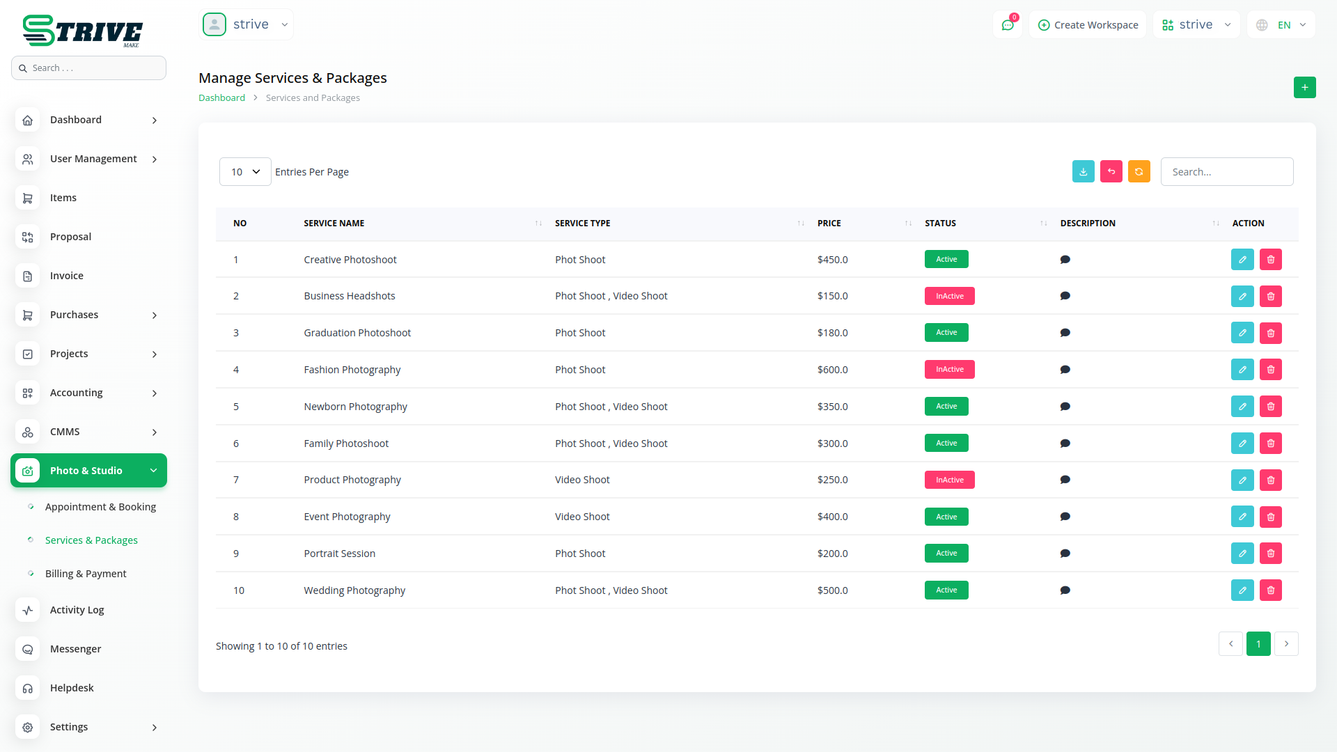 With StriveMake, you can easily create and customize services and packages to suit the needs of your clients. Whether you are offering individual photoshoots, wedding packages, or special promotions, the platform allows you to set up various options that can be tailored to different customer preferences.