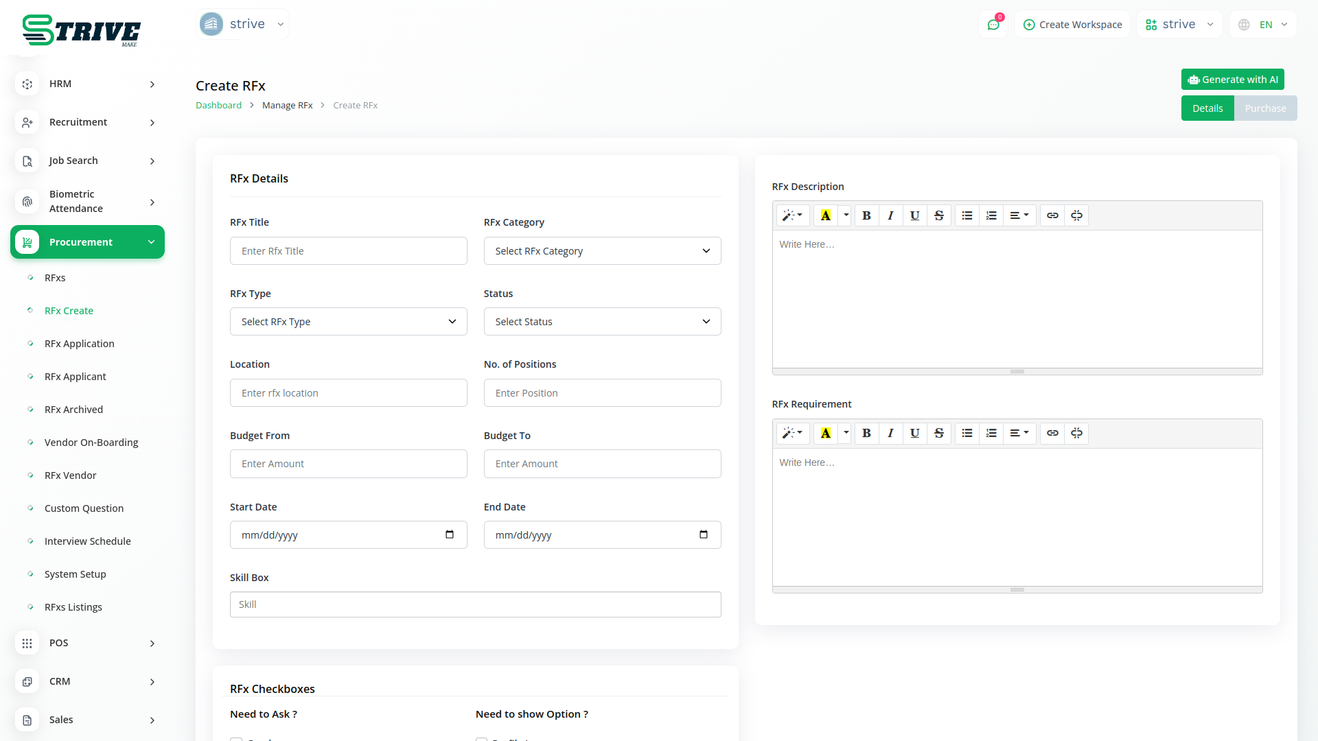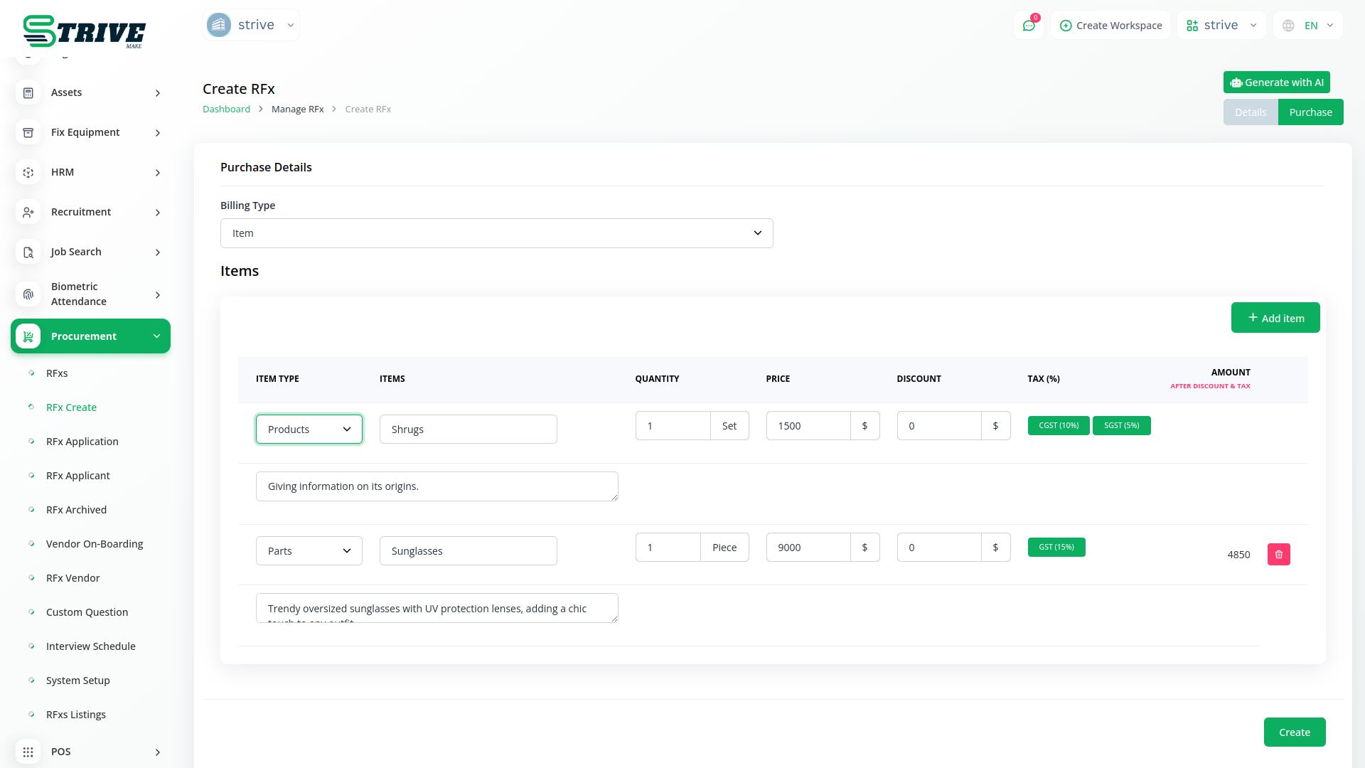Ensure compliance with organizational policies and regulatory requirements using StriveMake`s robust procurement module. Maintain comprehensive records of all procurement activities, including approvals, transactions, and communications. This centralized record-keeping not only simplifies audit processes but also enhances transparency and accountability across your procurement operations..
