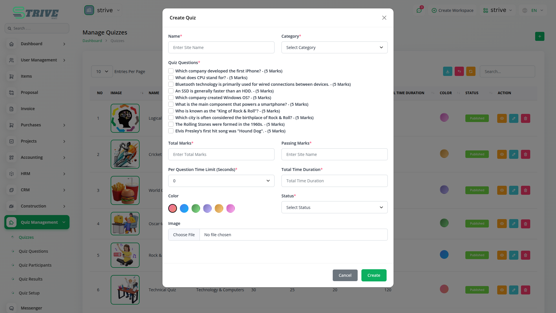 The Quiz Management add-on in StriveMake provides a structured and user-friendly approach to creating, managing, and evaluating quizzes. Whether you are an educator, a corporate trainer, or a business looking to conduct employee assessments, this add-on simplifies the entire quiz process. From setting up questions to tracking participant performance, it offers a complete solution that enhances engagement and productivity. By automating key aspects of quiz management, businesses and institutions can save time and ensure a smooth experience for both quiz creators and participants.