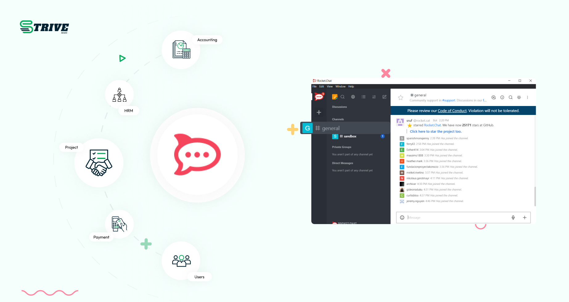 StriveMake now includes Rocket.Chat, giving teams a direct way to connect and collaborate. Instead of switching between different apps, users can send messages, share files, and manage conversations all within StriveMake. This helps businesses improve communication and stay organized.