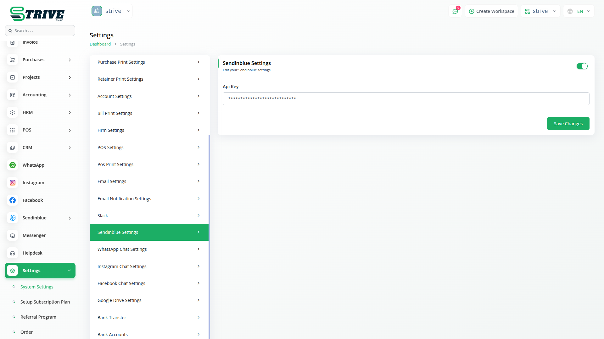To start using Sendinblue with StriveMake, users must first configure their settings by adding the required API Key. This setup ensures secure and reliable email delivery through Brevo, allowing businesses to automate their email campaigns with ease. Once configured, businesses can send emails effortlessly without switching between multiple platforms.