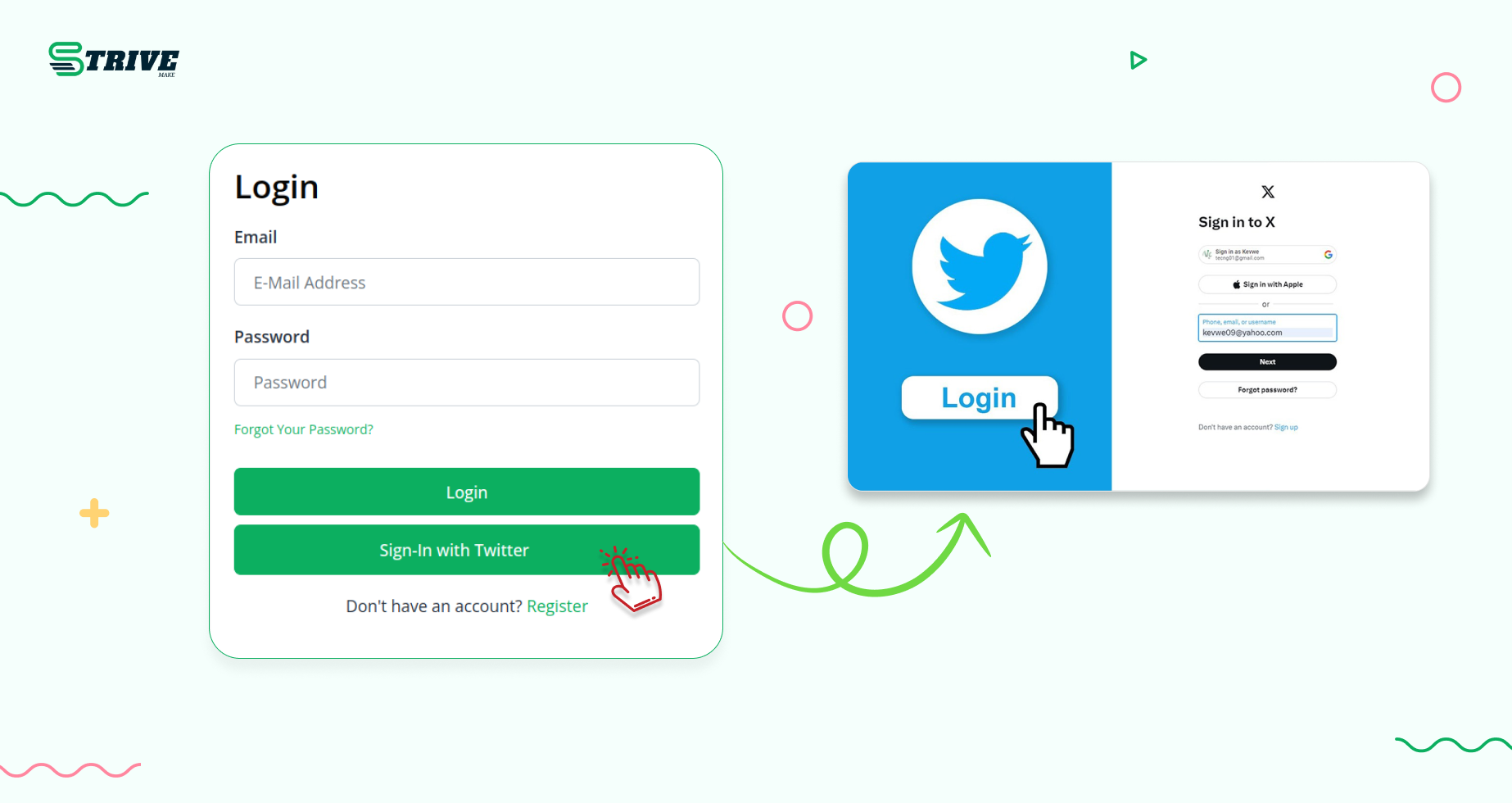 This integration significantly enhances the user experience by providing a quick and hassle-free method of accessing StriveMake. With just a few clicks, users can authenticate their identity through Twitter, bypassing the traditional sign-up and login procedures. This streamlined process not only saves time but also encourages more frequent use of the platform, as users can effortlessly log in and out as needed.