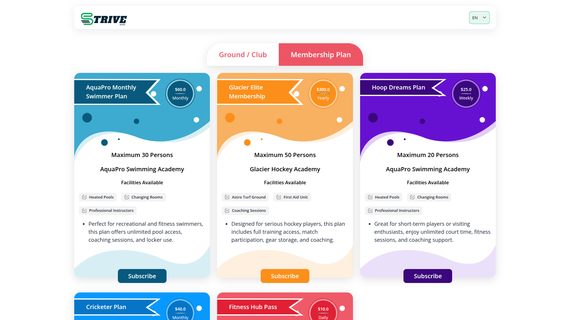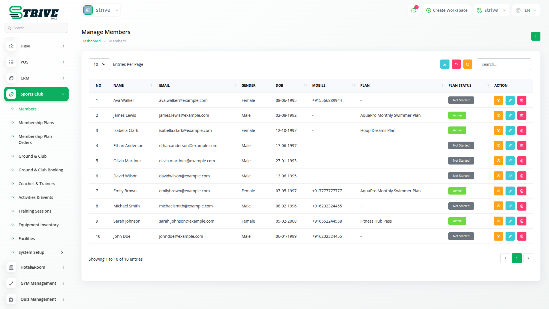 Offer multiple membership plans with different features like duration, pricing, and venue capacity. Assign plans to members and keep track of payment status, start/end dates, and receipts. This ensures every member has an active plan with full billing history.