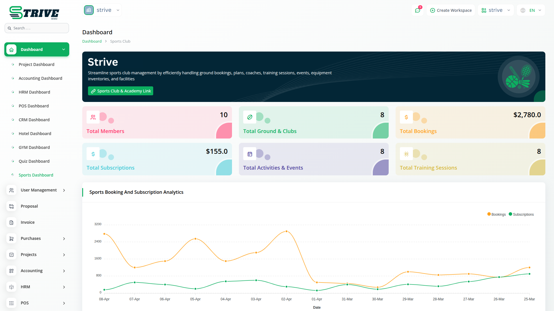 Sports Club & Academy Management is a complete solution to manage sports grounds, clubs, memberships, bookings, training sessions, events, coaches, and equipment. With powerful features like member management, plan subscriptions, real-time bookings, and inventory tracking, this script helps streamline every aspect of sports and academy operations.