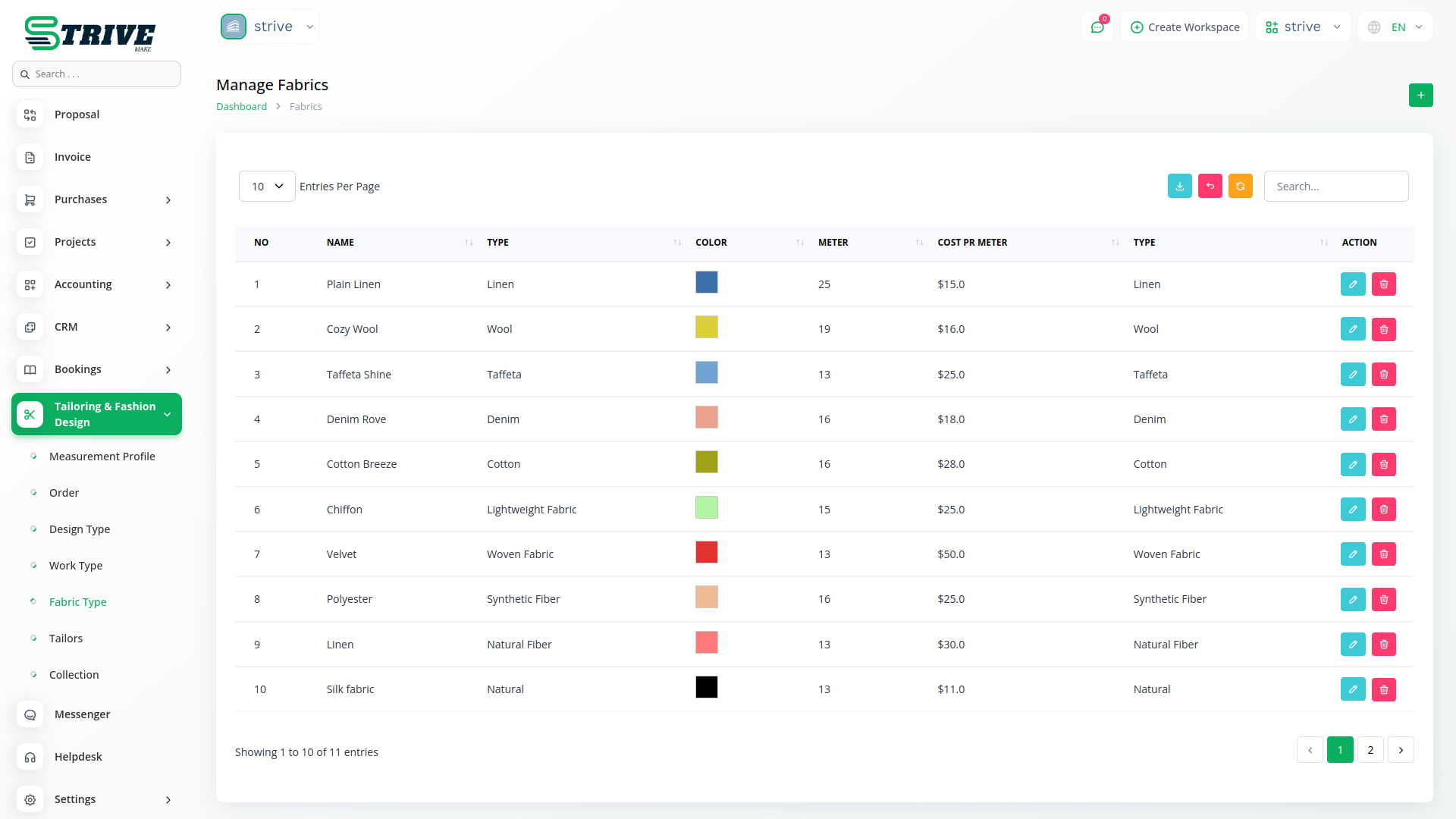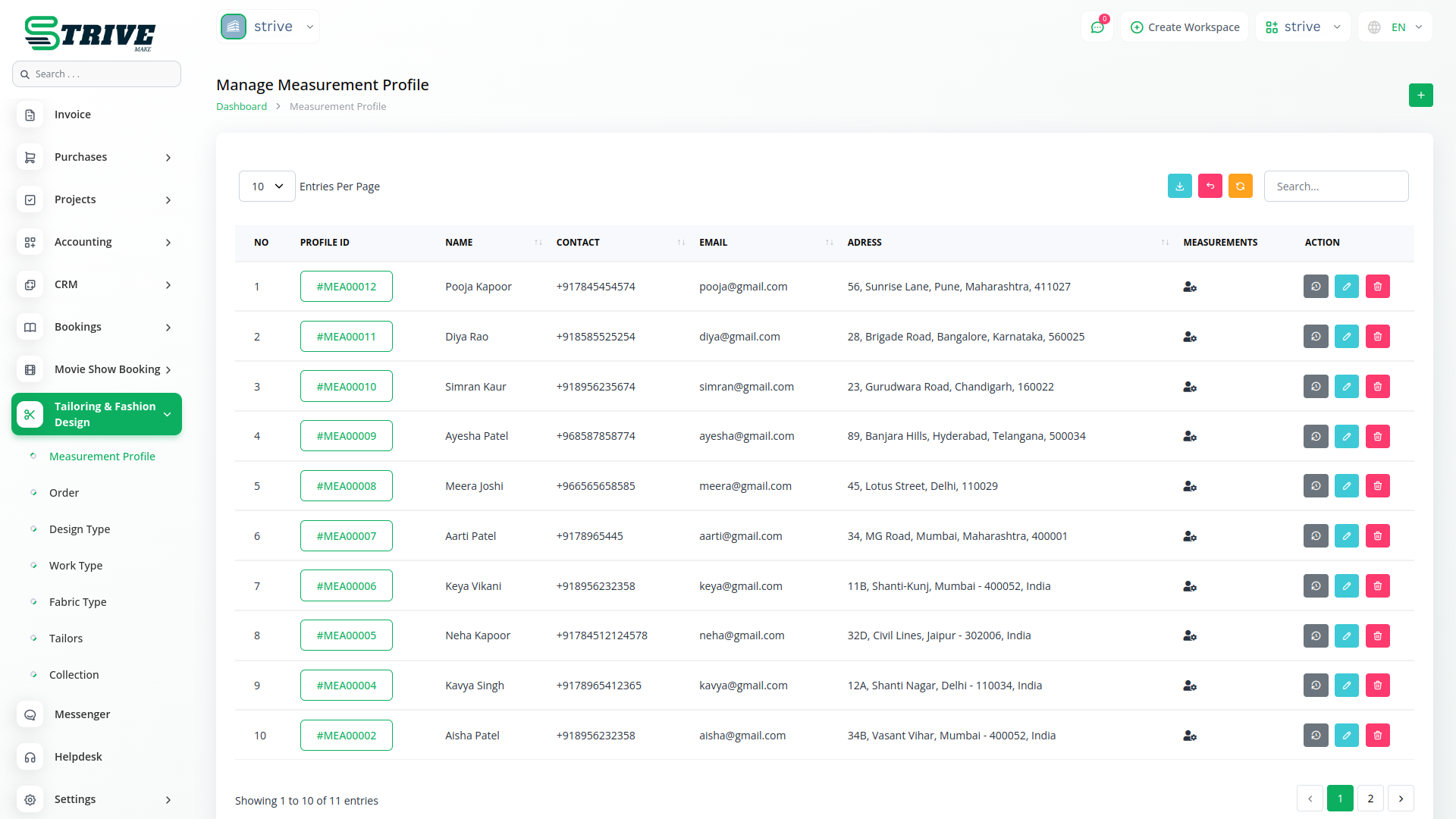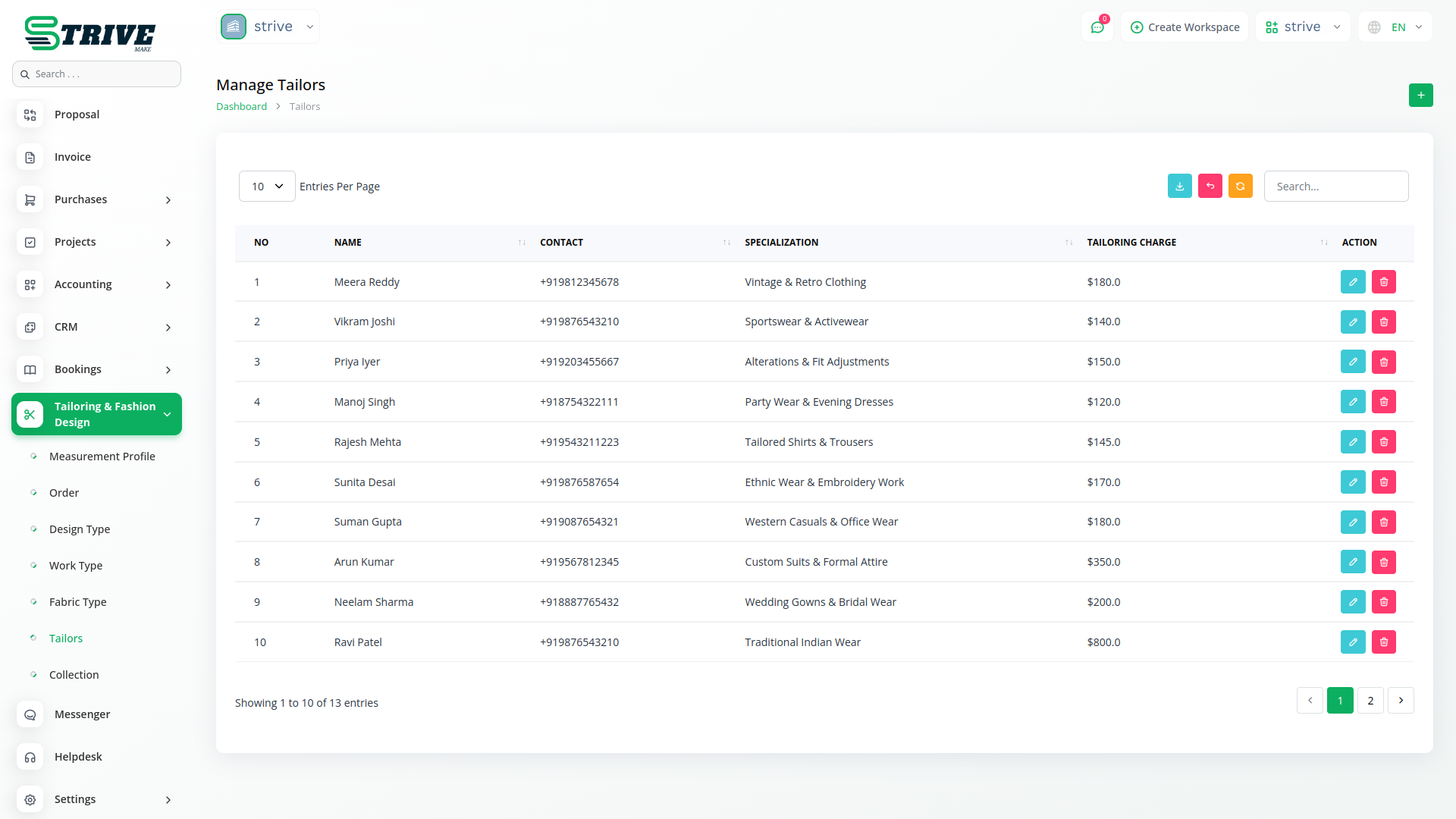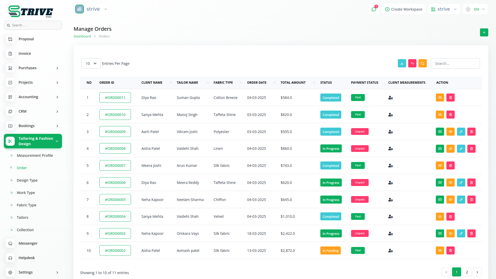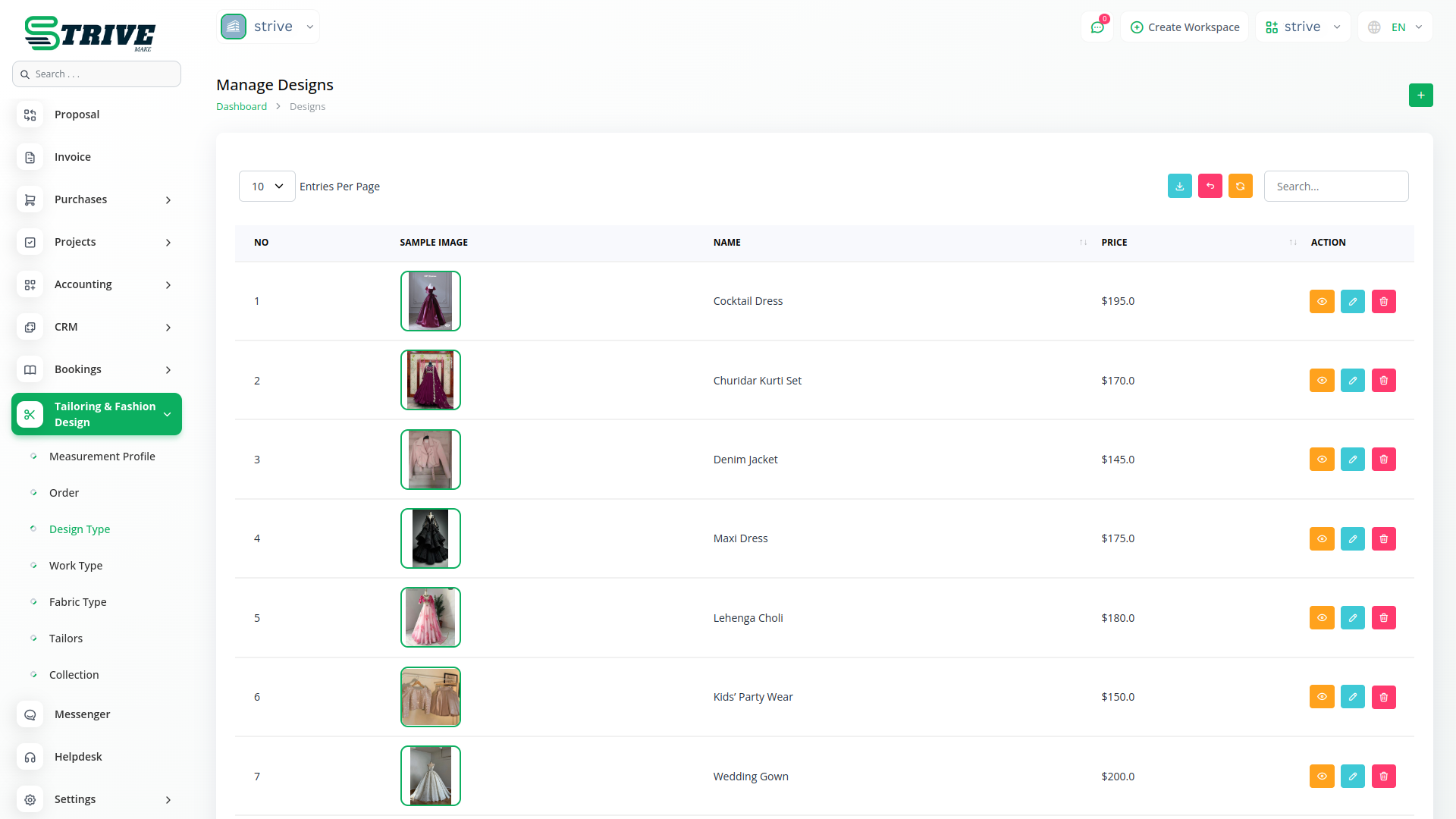 The Tailor & Fashion Design Add-on in StriveMake is designed to help tailoring businesses, boutiques, and fashion designers manage their operations efficiently. From taking accurate measurements to handling fabric inventory and assigning work to tailors, this module provides a structured system to keep everything in check. Whether you’re crafting custom outfits or working on client-specific designs, this add-on helps streamline operations, reduce manual errors, and improve overall productivity. With a centralized system for measurements, orders, designs, and fabrics, you can focus on creativity while ensuring a smooth workflow.