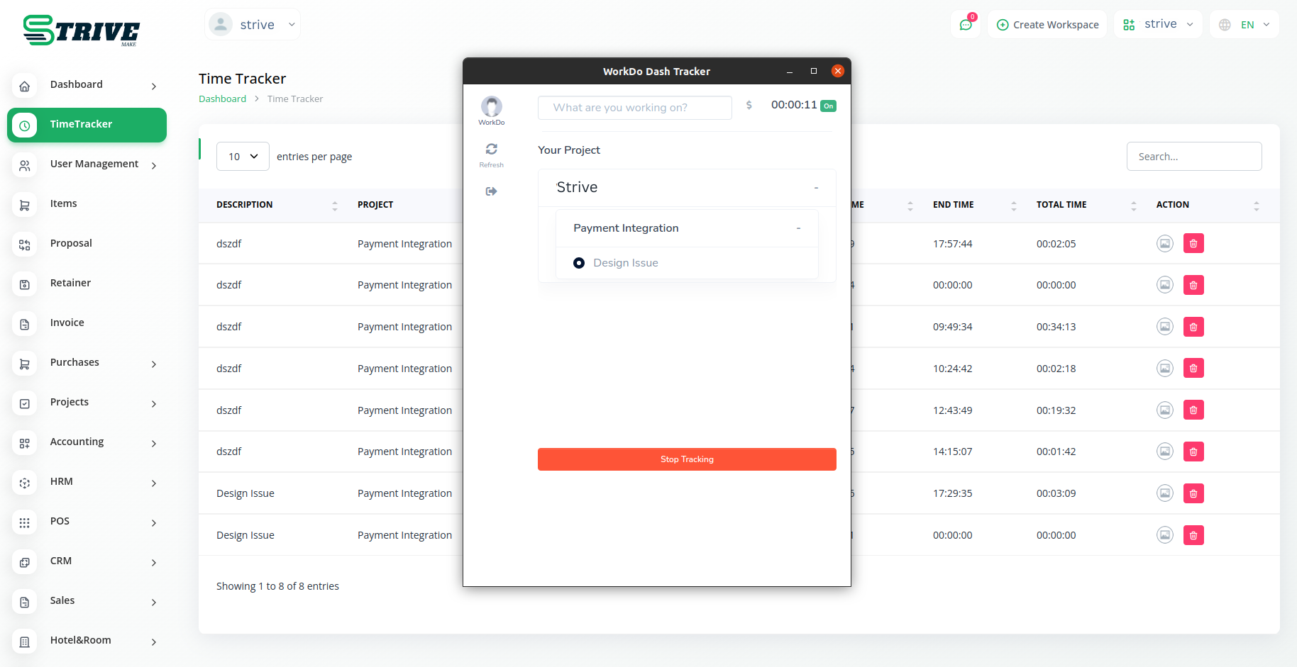 The Time Tracker Module in StriveMake redefines the way businesses manage their workforce, offering a suite of tools designed to enhance productivity, transparency, and accountability. With seamless task tracking, managers gain real-time visibility into ongoing activities, promoting efficient project management and a culture of responsibility within the organization.
