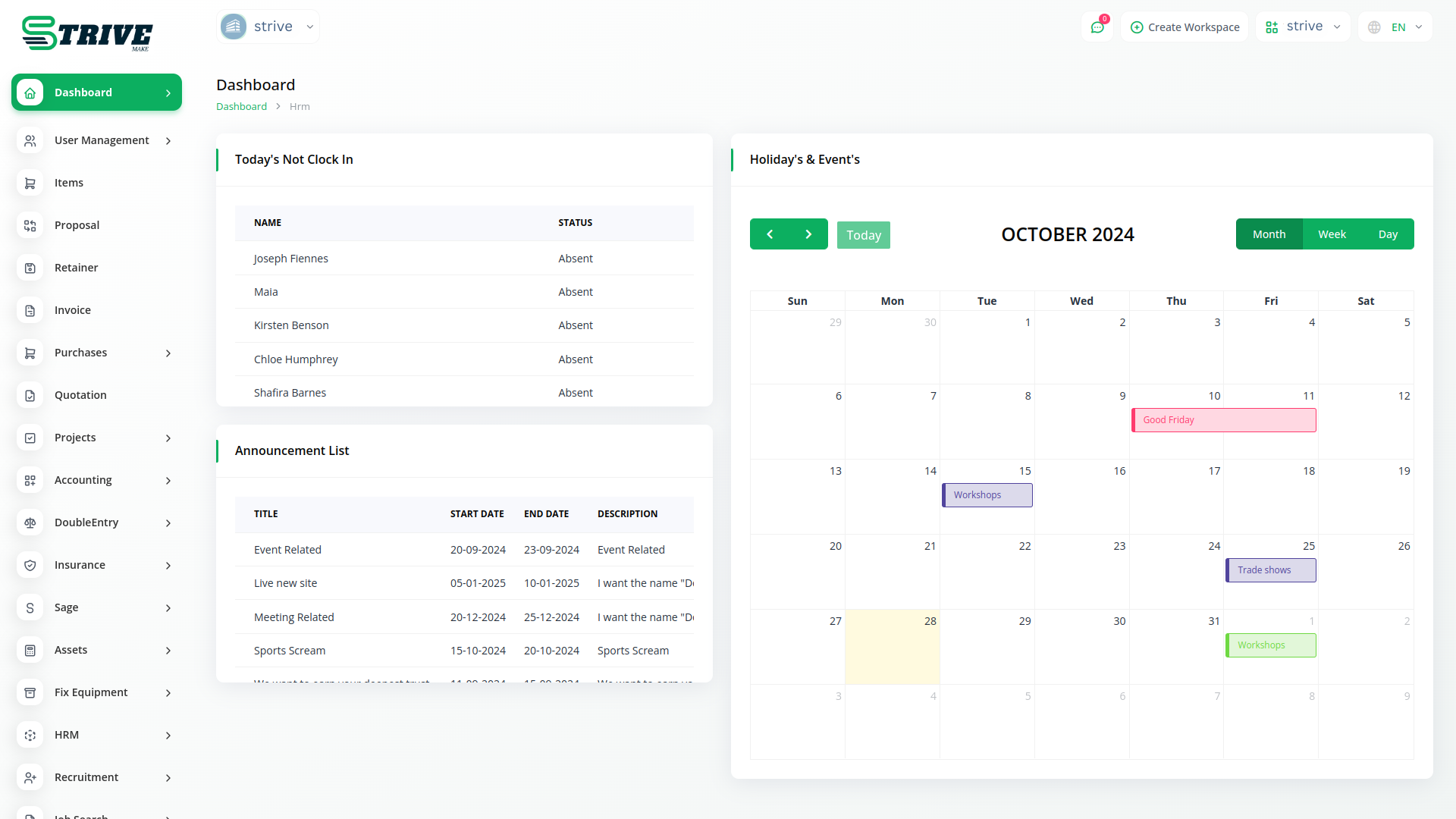 With StriveMake, you can conveniently manage all your business functions from a single location.