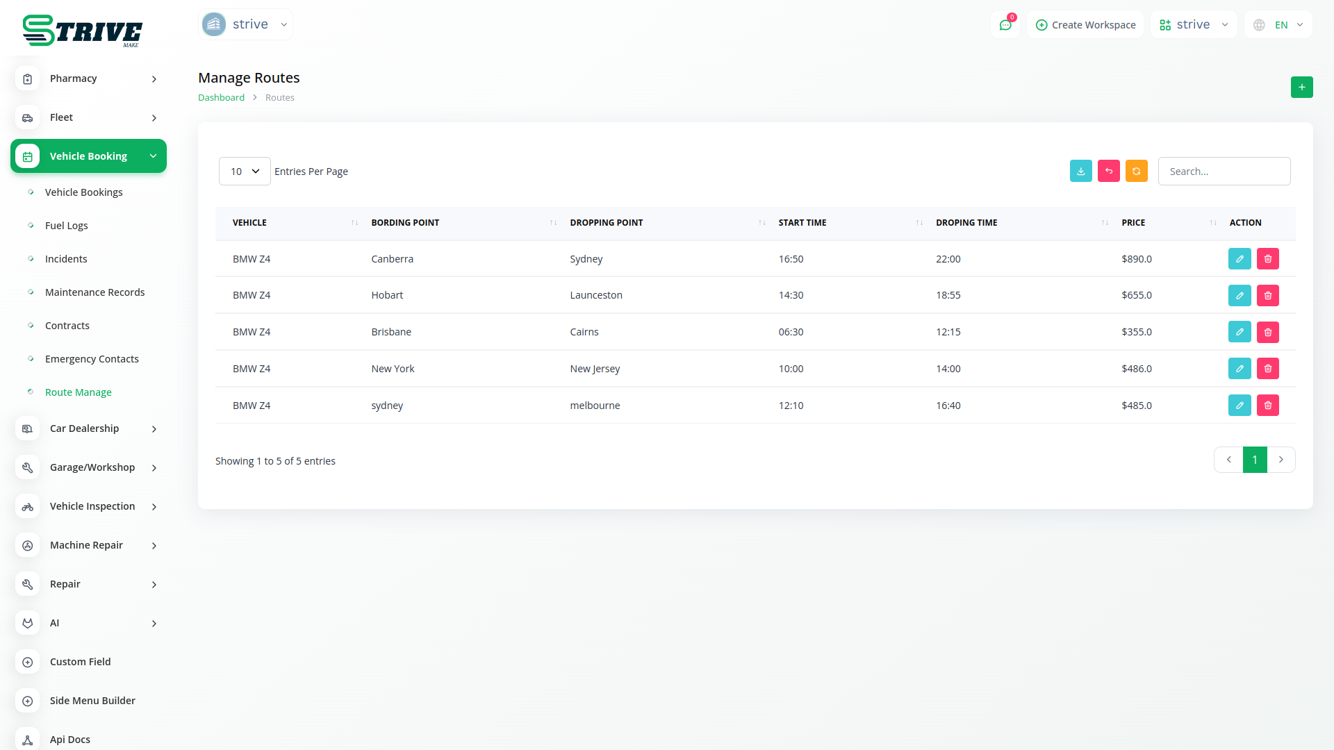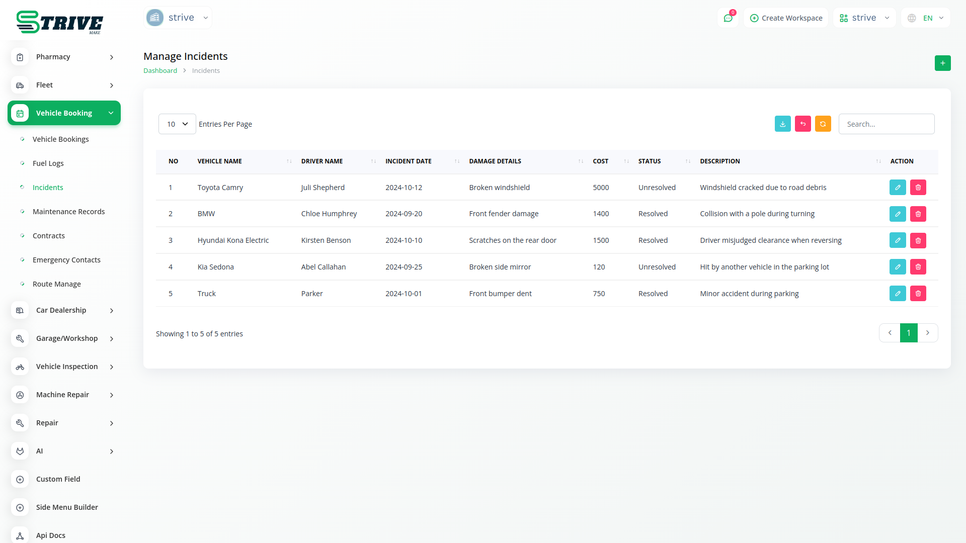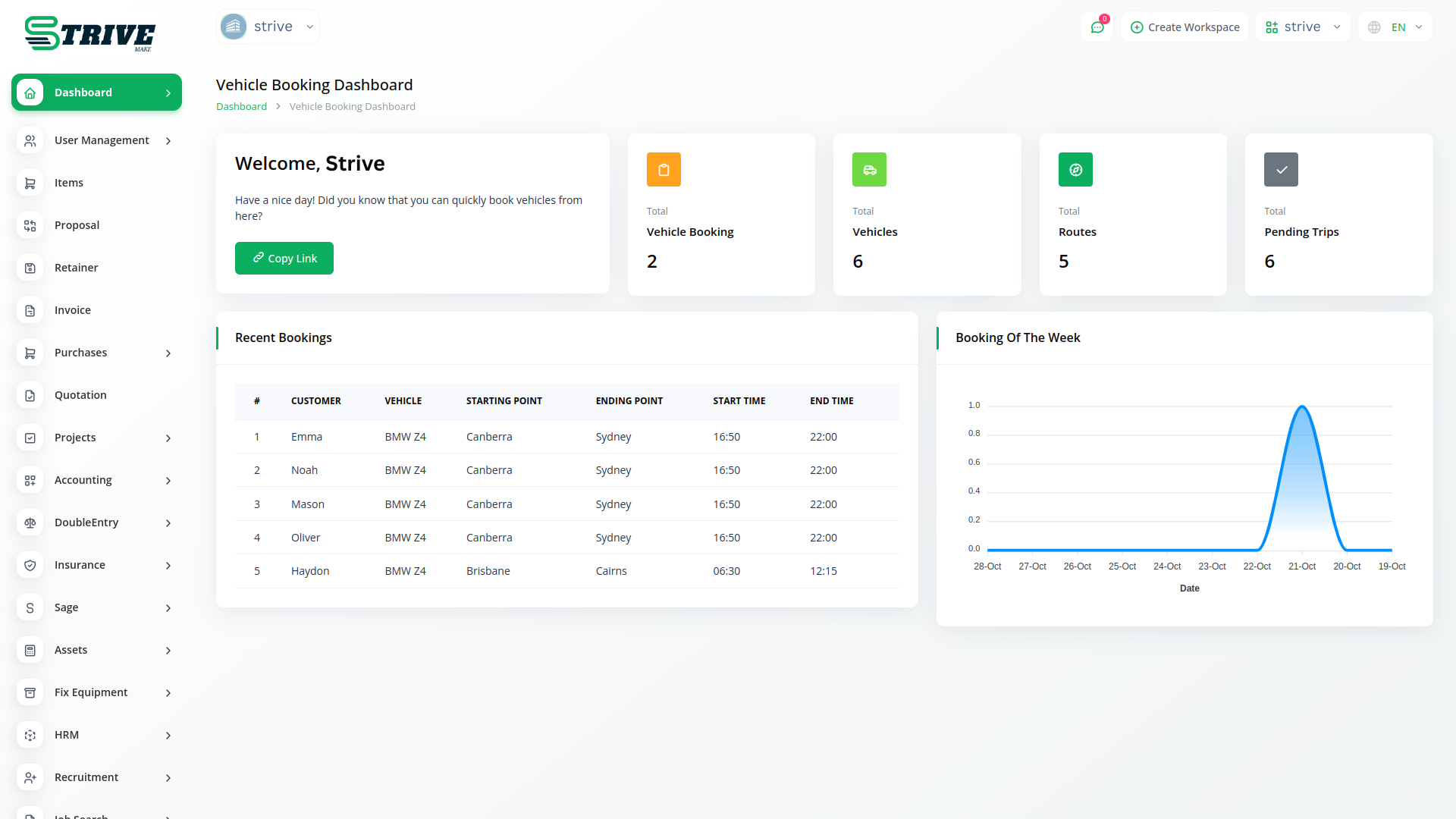 Vehicle Management in StriveMake revolutionizes how businesses handle their fleet operations. With an intuitive interface and robust functionalities, this module offers comprehensive solutions for tracking, maintaining, and optimizing vehicle fleets of any size. From monitoring vehicle usage and maintenance schedules to managing fuel consumption and driver assignments, StriveMake provides the tools necessary to streamline operations and maximize efficiency.