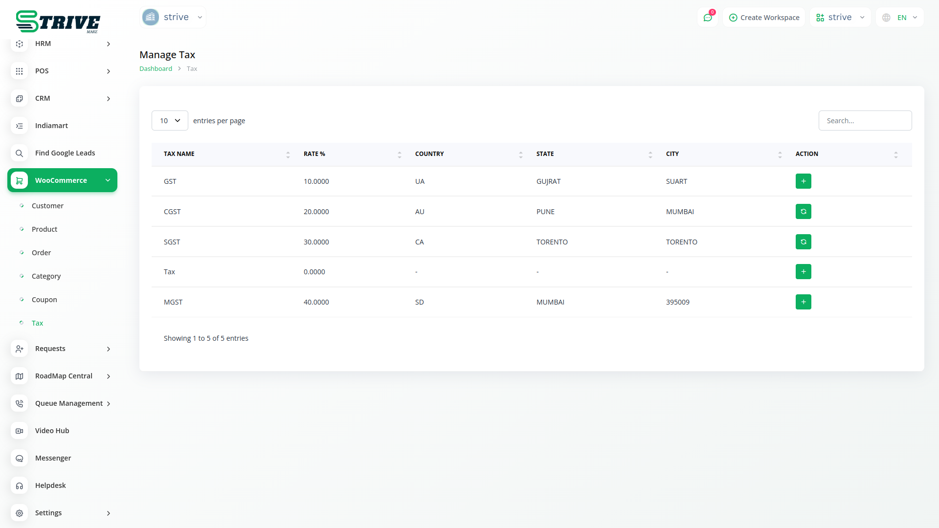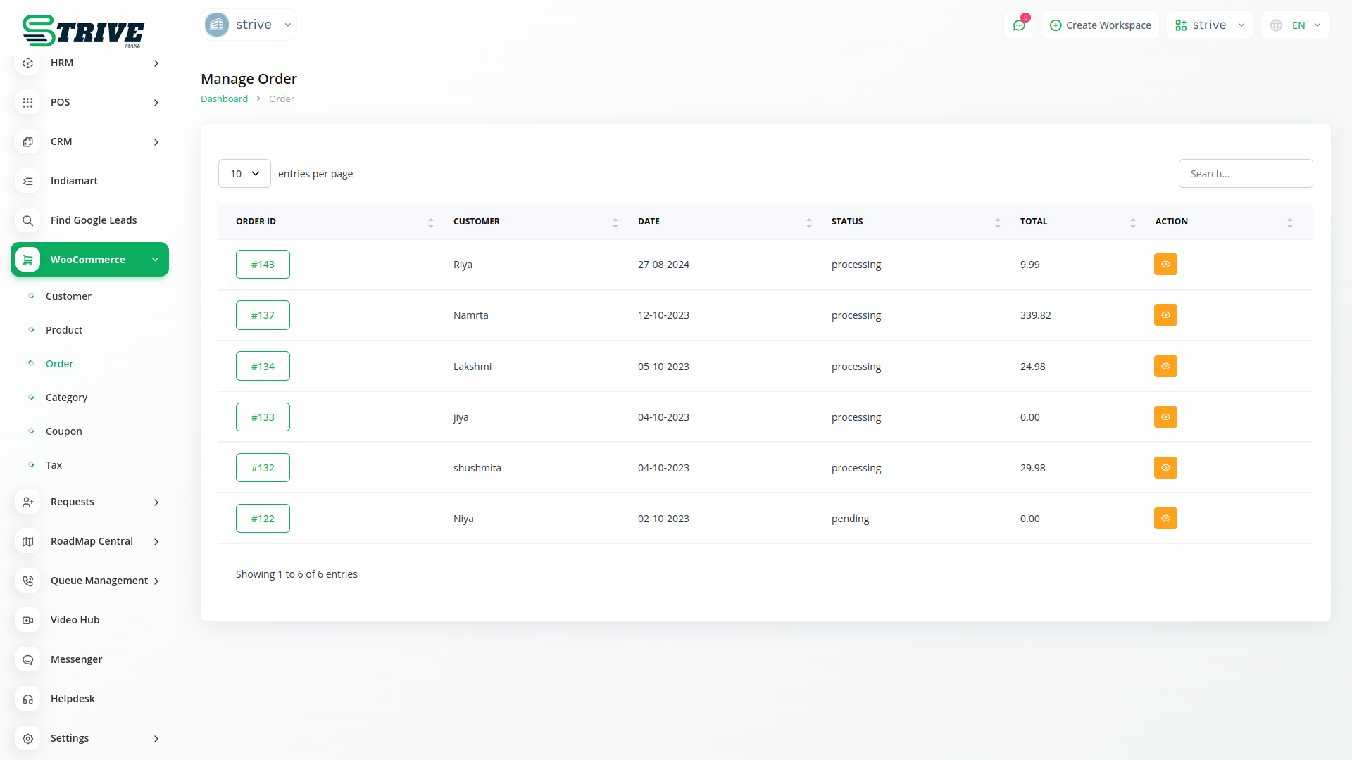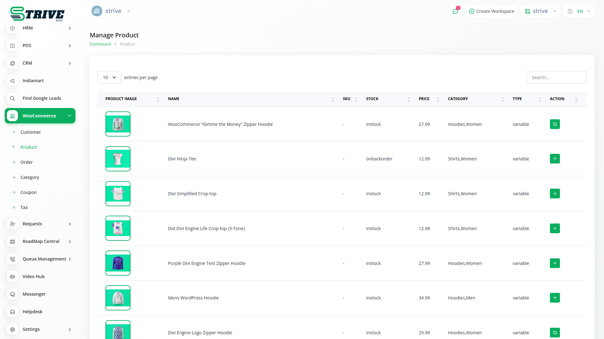 Integrate and manage your store`s products and inventory with WooCommerce using WooCommerce. Simplify product and coupon management while enhancing customer interactions for an optimized WooCommerce experience.You can also add your woocommerce products to StriveMake by clicking on the button given beside the product.