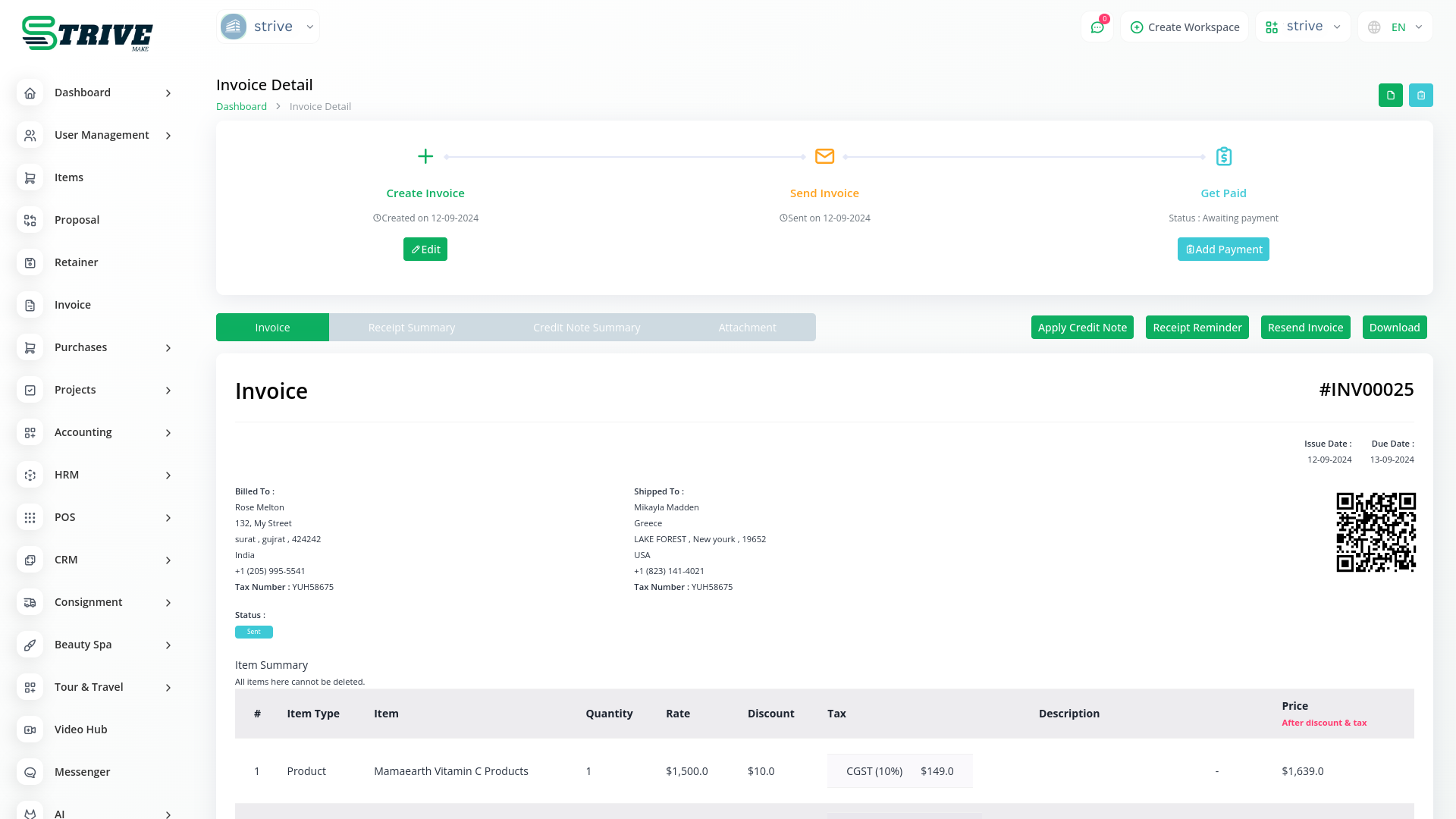 With StriveMake, you can conveniently manage all your business functions from a single location.